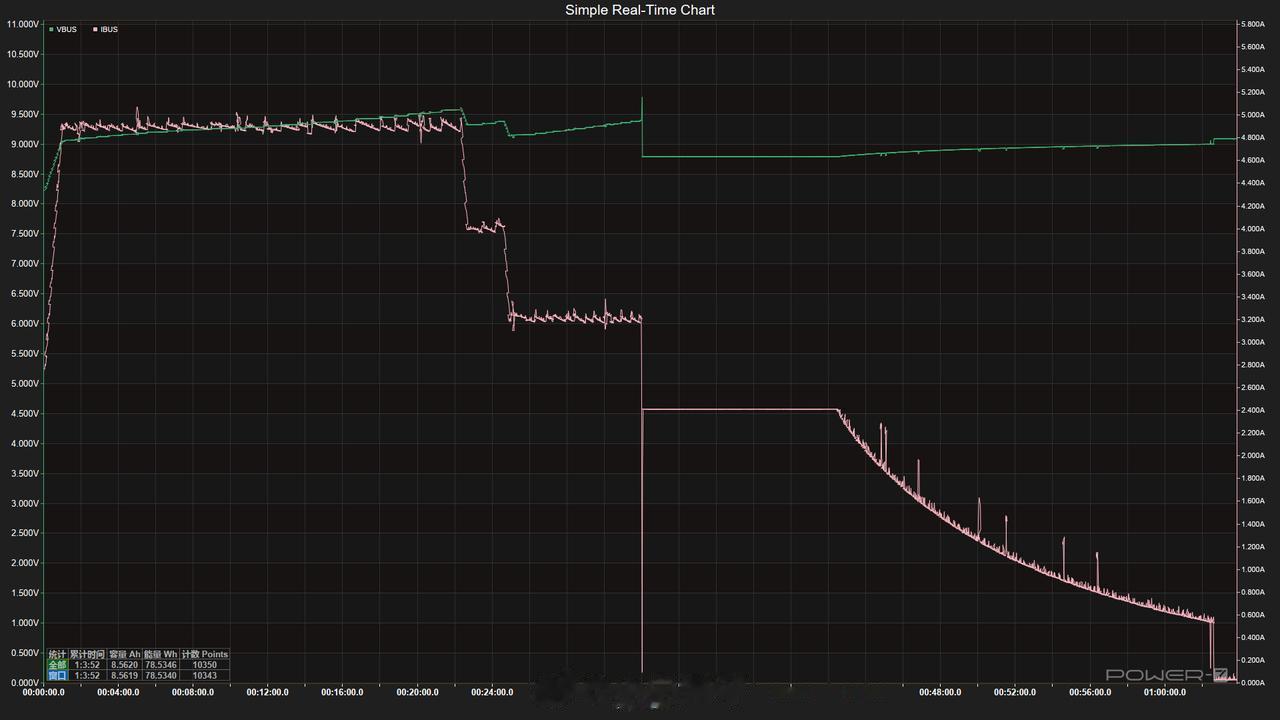 拯救者 Y700(2023款)充电功率实测结果对比对比官方宣传的45W挺意外的:25℃环境中实测功率最高能到47W,并且45W以上坚持了22分钟,6550mAh电池,55分钟前台显示充入100%,63分钟完全充满,这换算下来比某些60多瓦都快[吐舌]