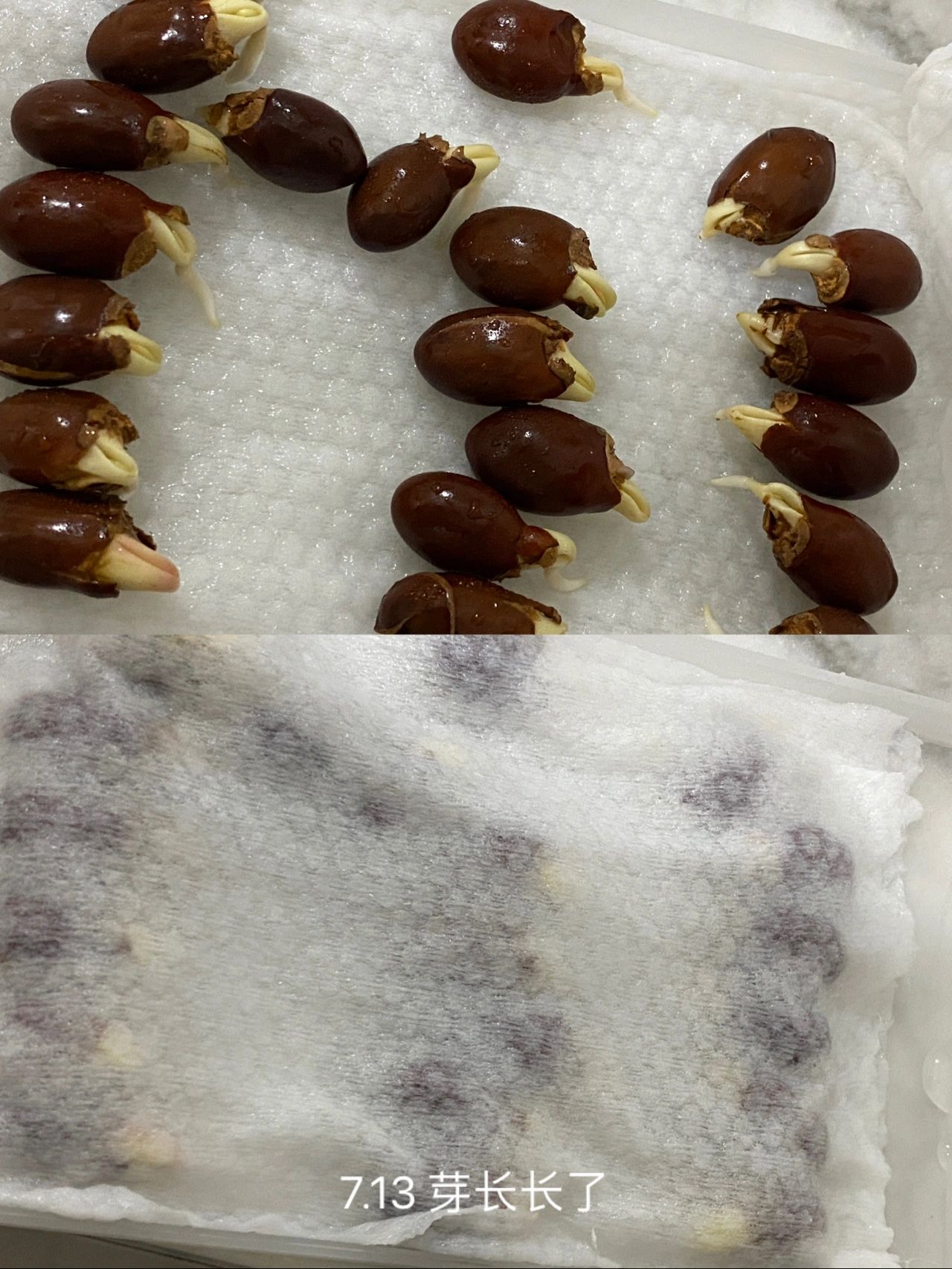 步骤2️泡水4-5天直到荔枝冒小芽,用湿纸巾包起来,装在密封的罐子里