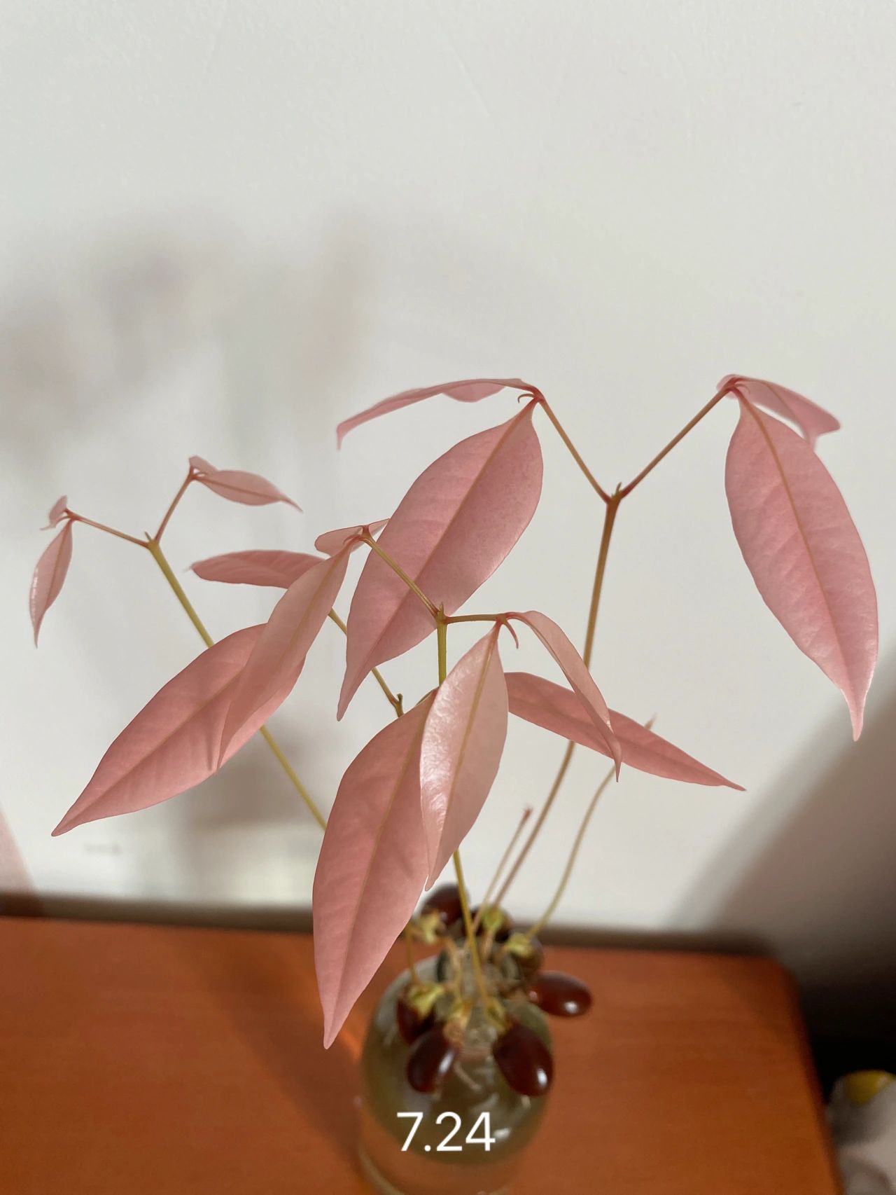 后续把盆栽🪴放到阳光下叶片由粉色变成白色最后转变绿色。
