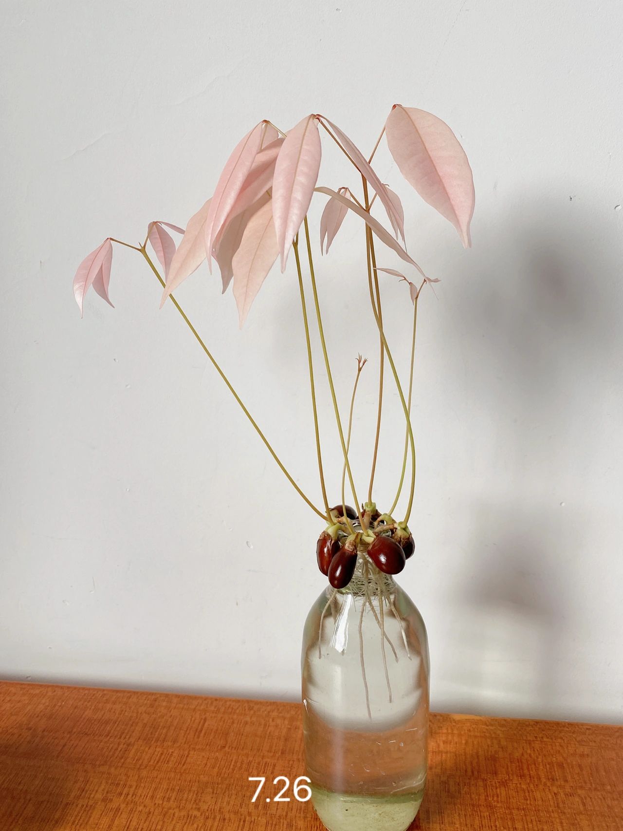 p s:想要粉粉的叶子一定一定要放在避光的空间里!!!每天给瓶子里加满水让根系充分吸收水分,让它快快长大