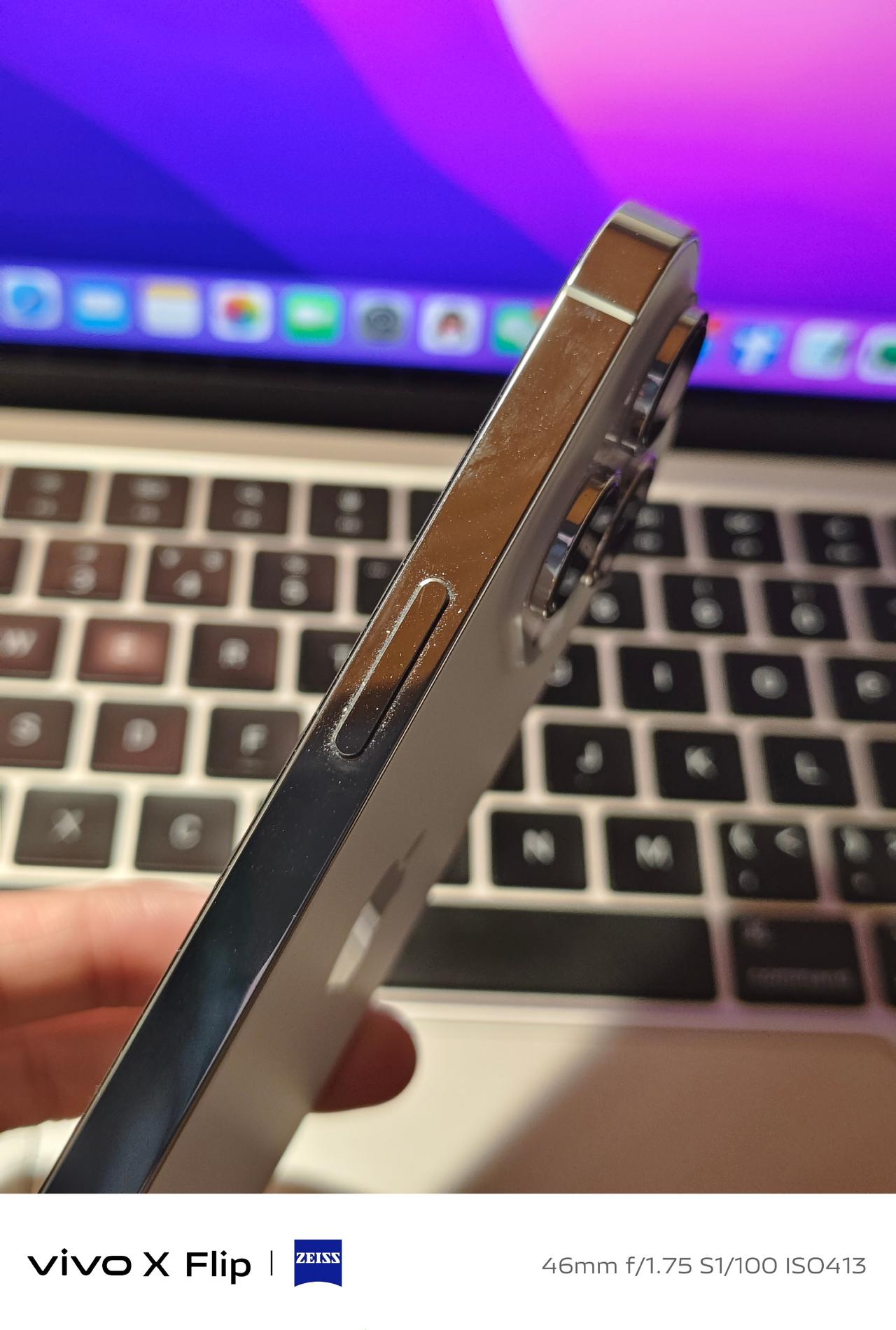 iPhone这按键该改改了,都成灰尘收集器了![汗] iPhone 14 Pro的不锈钢中框虽是很高级、精致,但我觉得没啥大作用,不如标准版的铝金属不沾染指纹好,而且按键很容易沾染灰尘!搞得我平时都只能戴壳😕