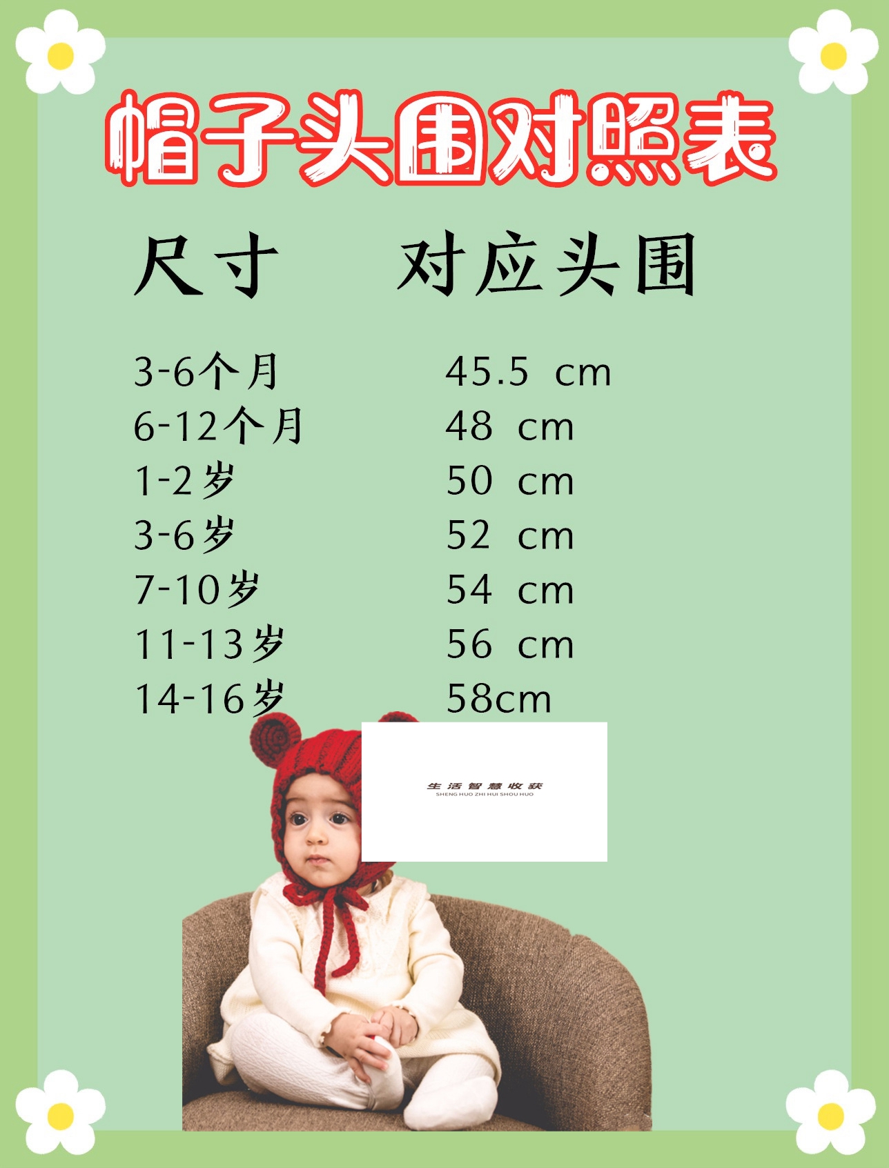 ⭕️图三是宝宝头围尺码,冬天来了,买帽子的季节到了,是不是搞不懂宝宝的头围码数,来来来,看这里,帮你选一顶合适又好看的帽子哟!