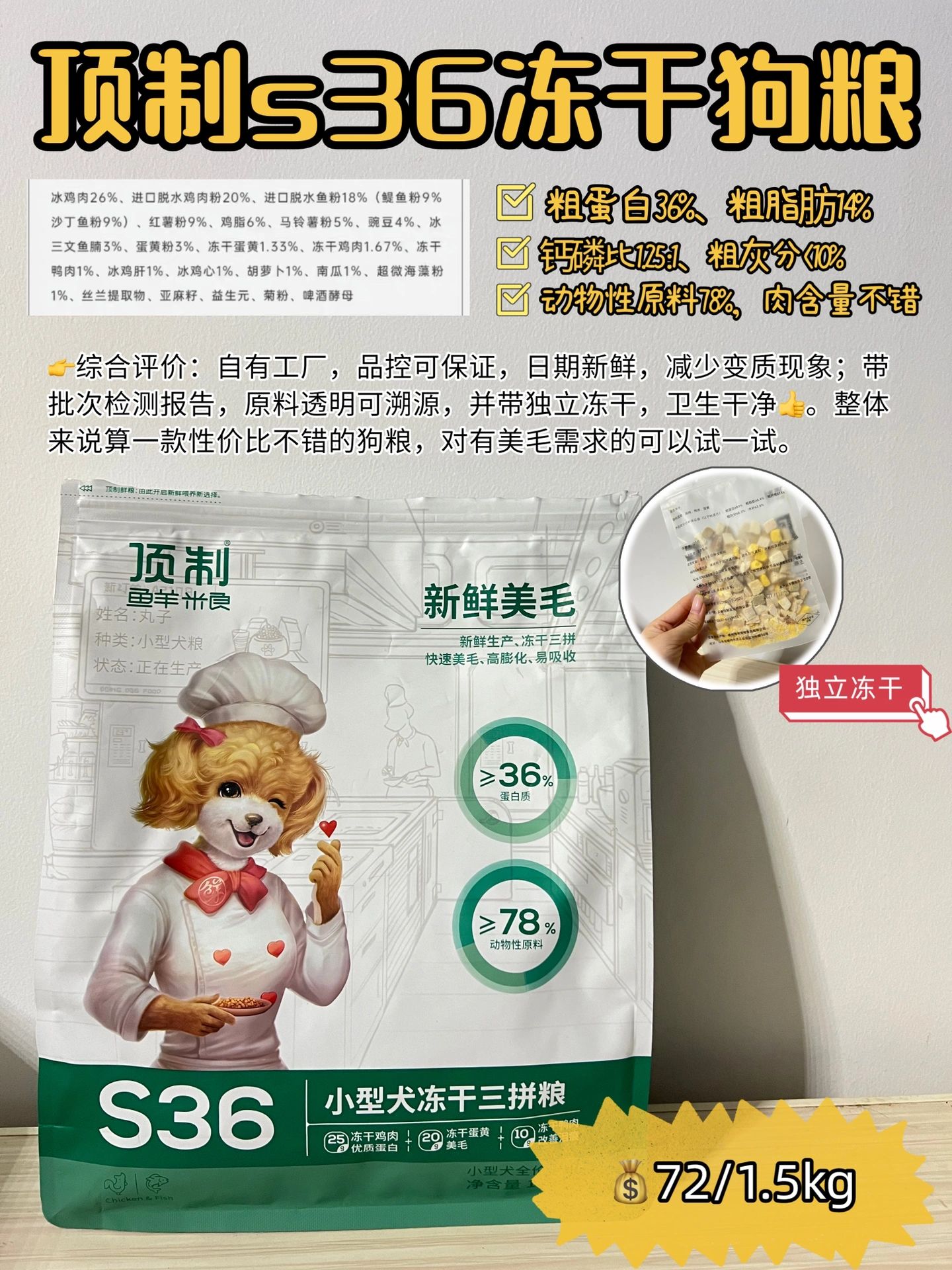 1顶制s36冻干狗粮:美毛、挑食(鲜粮)
