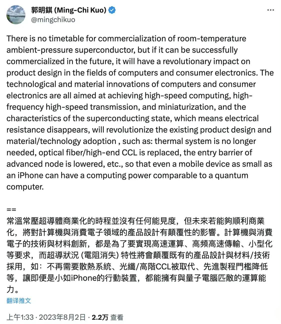 苹果的营销不得不让人佩服,热搜一个接着一个上,好像啥热点都能扯出一个热搜,你说是网友自发的吧,这热搜也太多了吧?没有营销团队我都不太信。虽然郭明琦的报告是值得看的,尤其是消费电子领域。但人家原文好像说的是“小如iPhone的装置,都能带来匹敌电脑的运算能力”,人家就只是打个比方,并不是说iPhone本体,一些媒体能不能不要为了流量去起一些吸引眼球误导人的话题?
