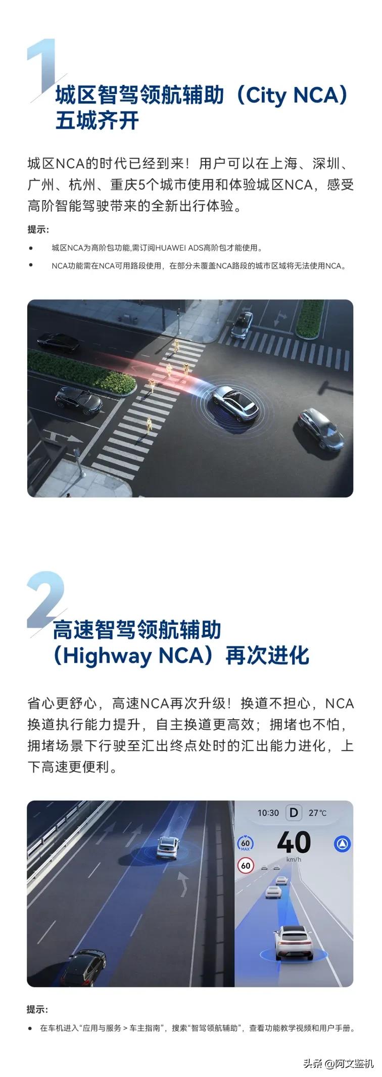 前些时日,试驾了问界M5智驾版,OTA升级后辅助功能的大幅提升,不过其他方面没有太多的变化,具体就来说一下智控系统的亮点。 NCA智驾领航功能的优势在于系统不再依赖高精地图进行,因为受限于政策或成本的原因,部分城市并没有开通高精地图,所以部分地区无法实现更完善的智控体验。但是问界M5智驾版的NCA功能是在借助感知硬件的协助下,基于华为拟人化算法以及高性能计算机平台,其智控系统的判断能力、探测能力以及反应速度都得到了大幅提升。 当然,其他方面如城区LCC、智能泊车辅助等功能也同样有着不错的表现。整体来说,这款车在OTA升级后,它的智控水平明显提升,而且应用范围相比普通的智控系统更广泛,如果在L2+的级别范围来看,这套系统更接近L3级的水平了。 近期考虑购买这款车的朋友可以试驾一下,其他方面先不说,这款车的智控水平的确可以给予高分评价。