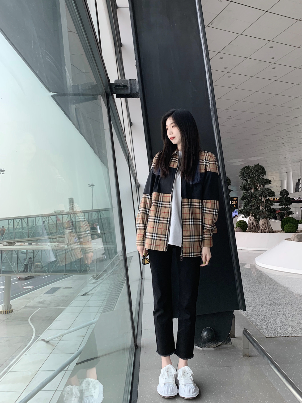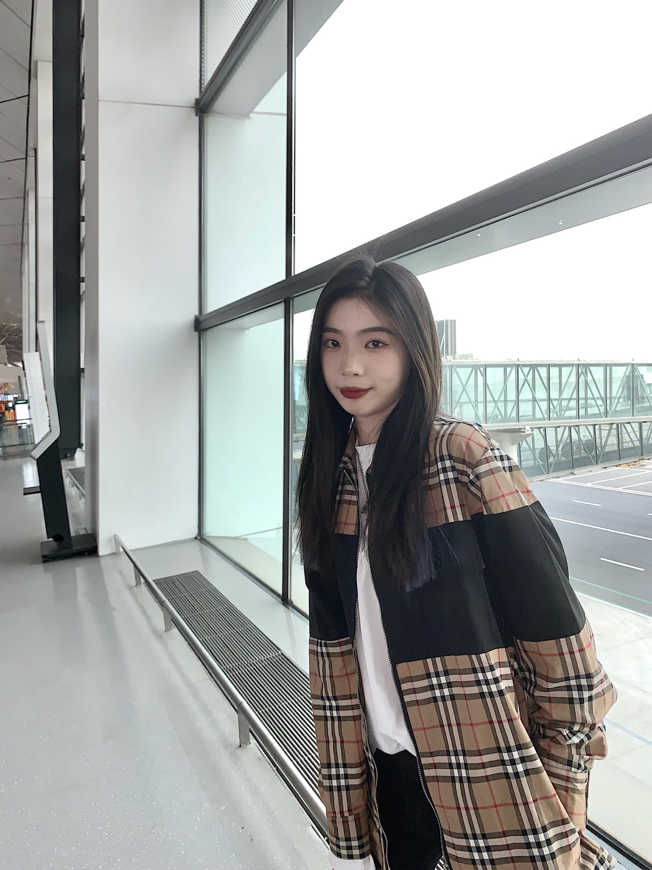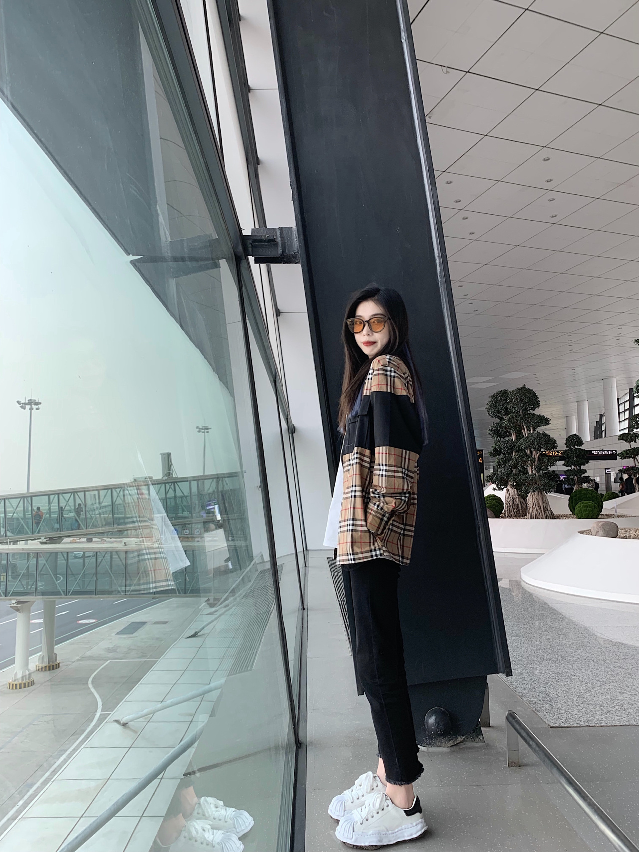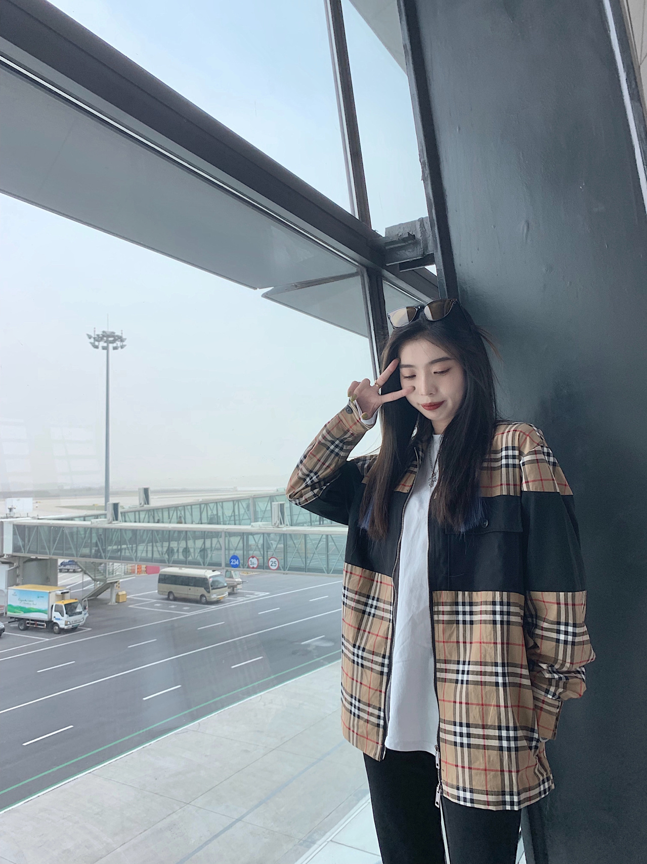去青岛玩耍啦~要做飞机所以选择一套简单 舒服的衣服,经典的格子外套,随意搭配了一条黑色直筒裤