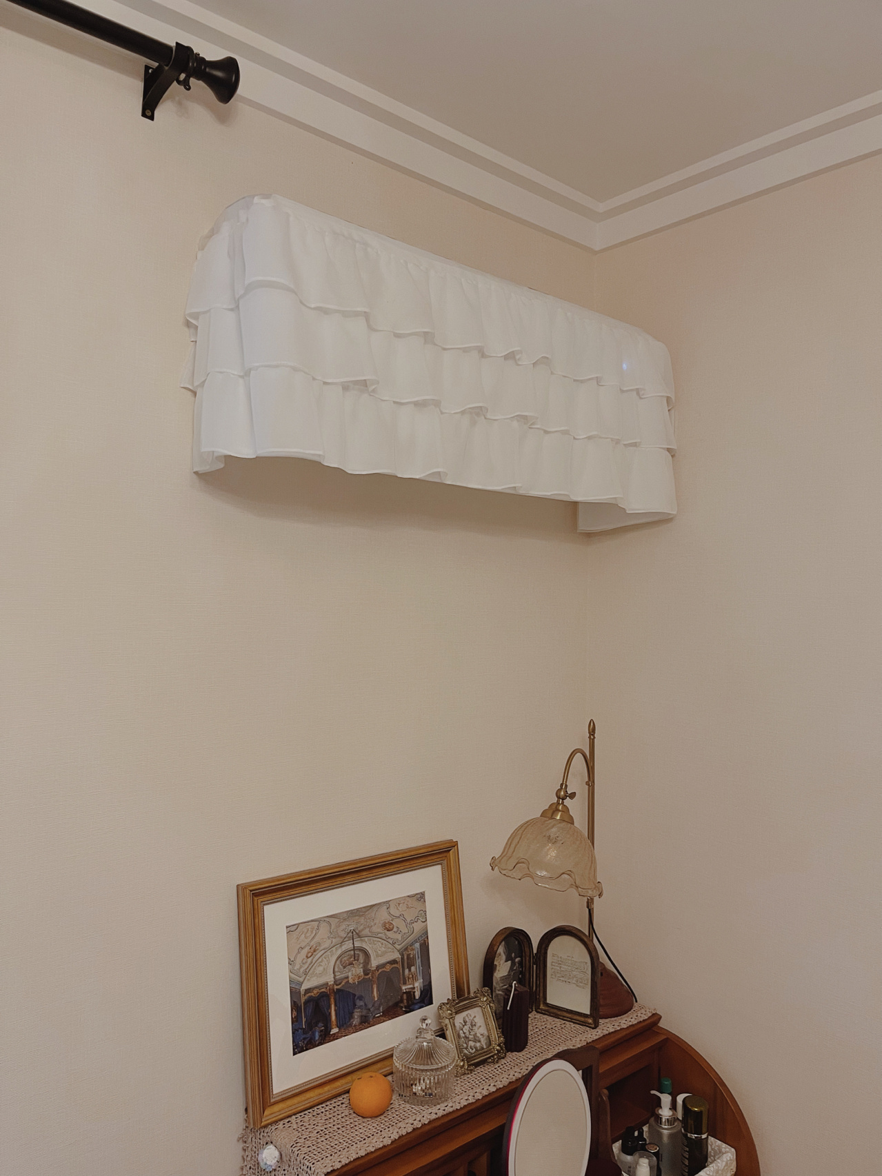 今天分享给你们.一开始为了想给这个空调遮丑的.后面发现它还可以防尘.