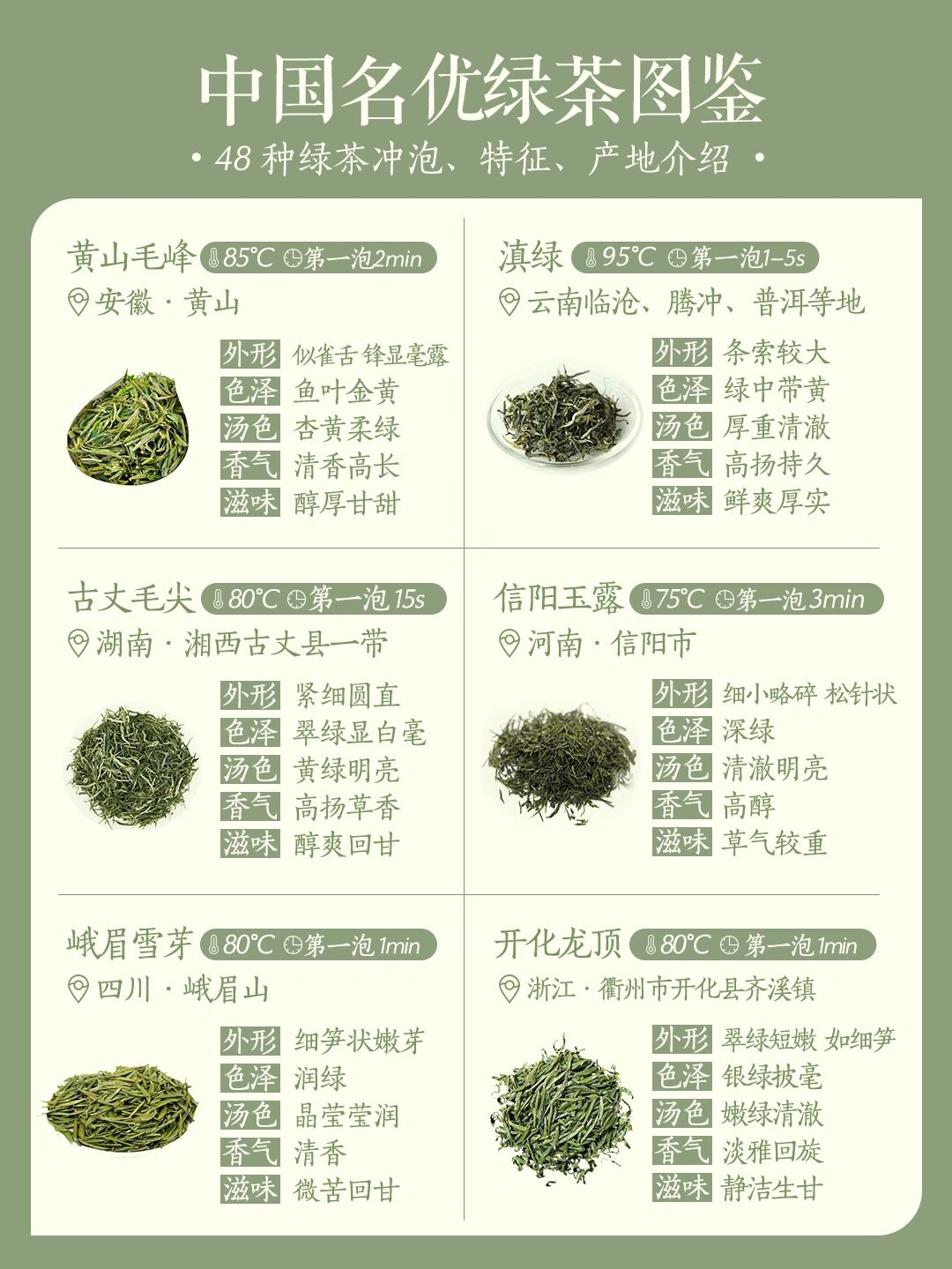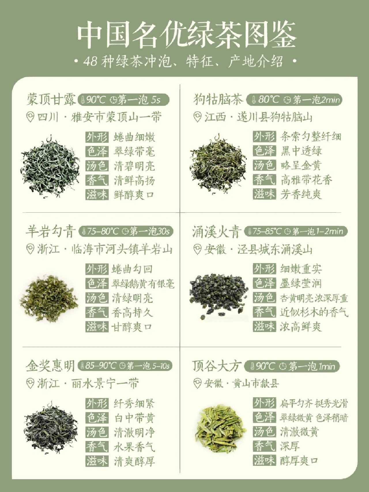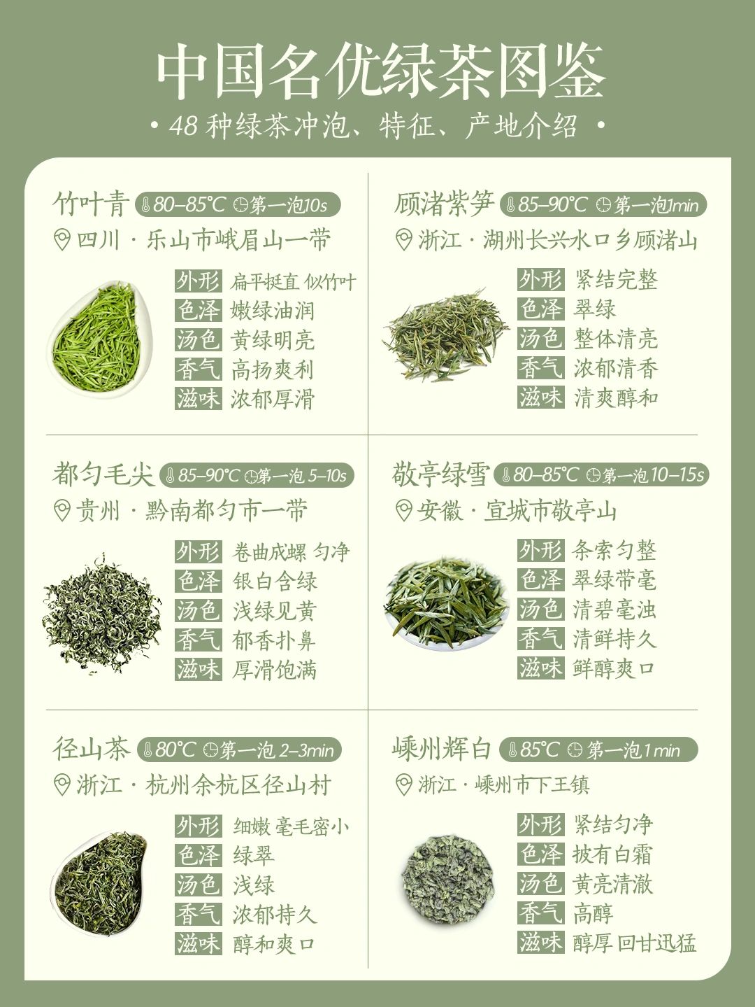 今天为茶友们盘点了48款名优绿茶,把冲泡方法、特征、产地一次性说说清。