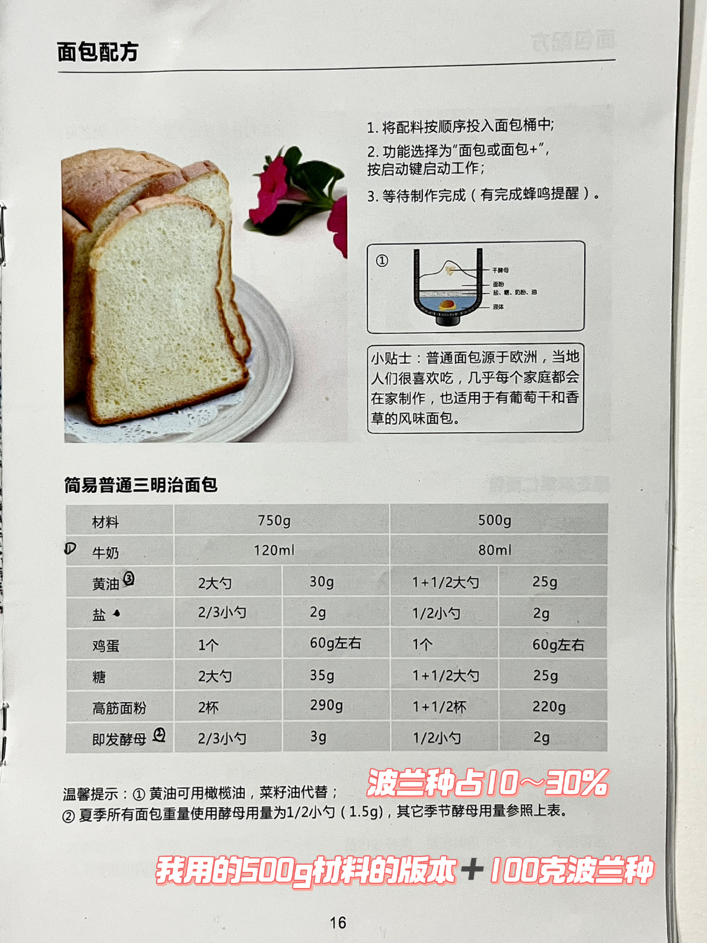 3. 面团➕波兰种➕黄油,一键面包功能。