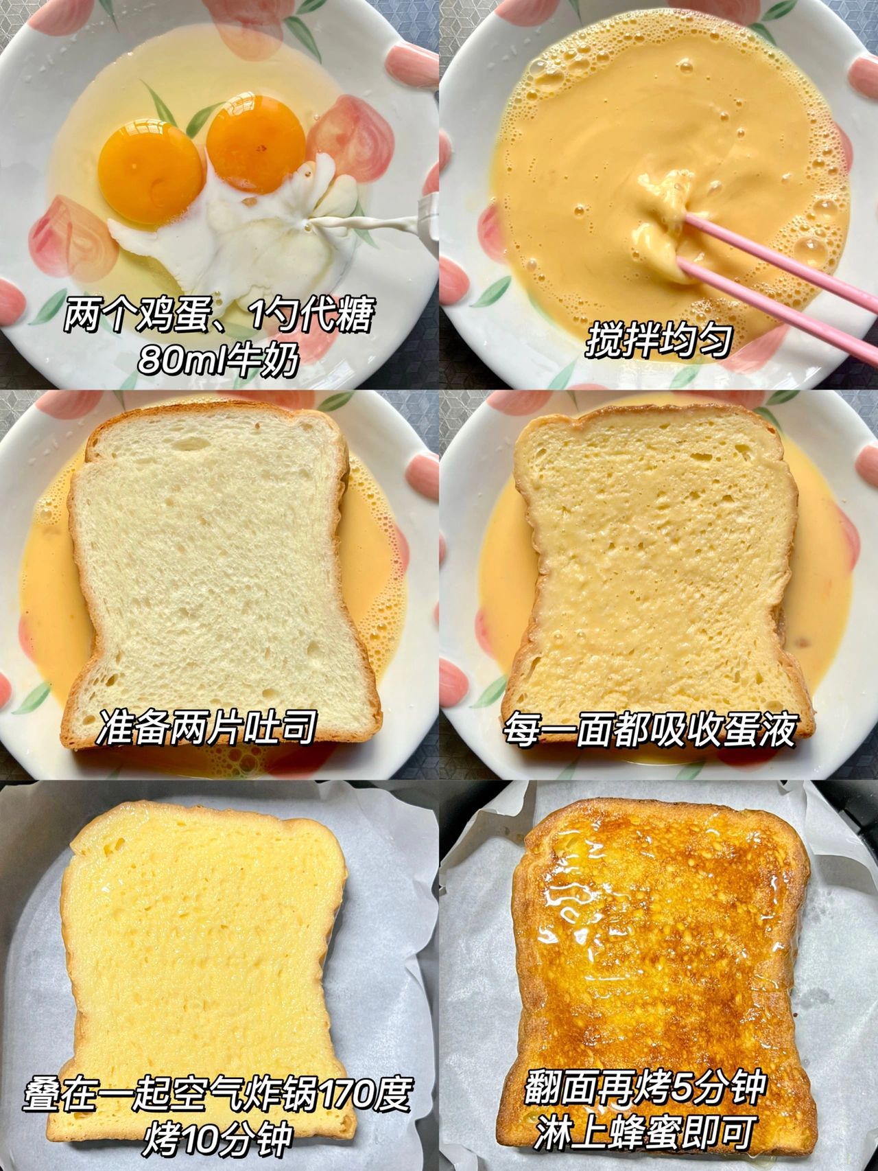 3空气炸锅170℃烤10分钟,翻面再烤5分钟就完成啦!!!吃的时候可以淋上蜂蜜或者炼乳