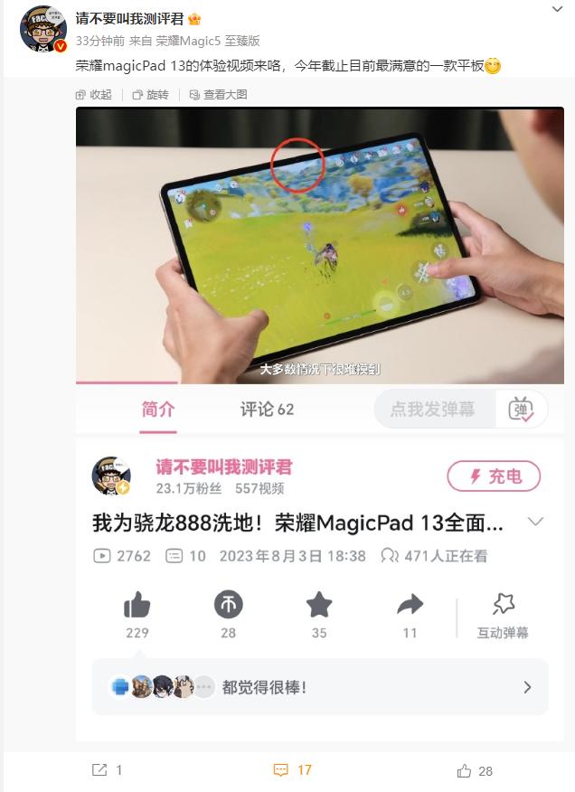 我为骁龙888洗地,荣耀MagicPad是今年体验最为满意的一台平板。[看] 游戏体验方面,荣耀MagicPad虽然不及一些骁龙8+平板,但综合体验没问题,差距较小。到了流畅度方面,荣耀就优势很大了,比某些骁龙8+平板还要流畅,大家应该知道这是谁了。[吃瓜群众]办公体验方面,和华为平板比较接近,都是十分完善的。 如果想入手一款日常体验、娱乐办公都不错的平板,可以考虑荣耀MagicPad,当然最好是第三方看看,会便宜不少。