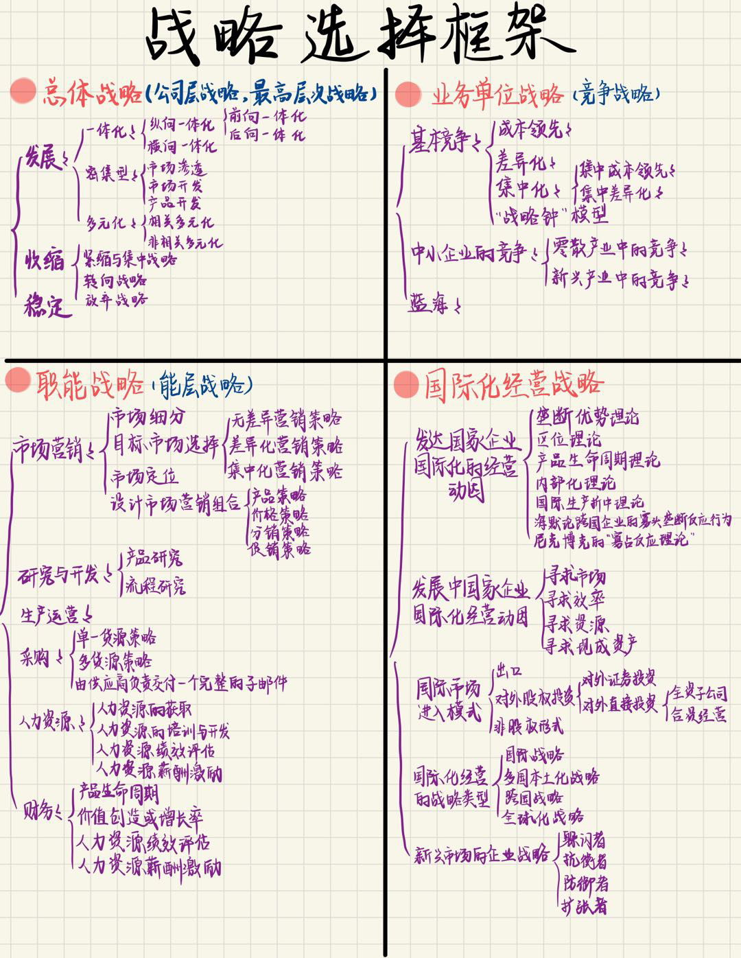 共有四个战略总体战略,业务单位战略,职能战略,国际化经营战略