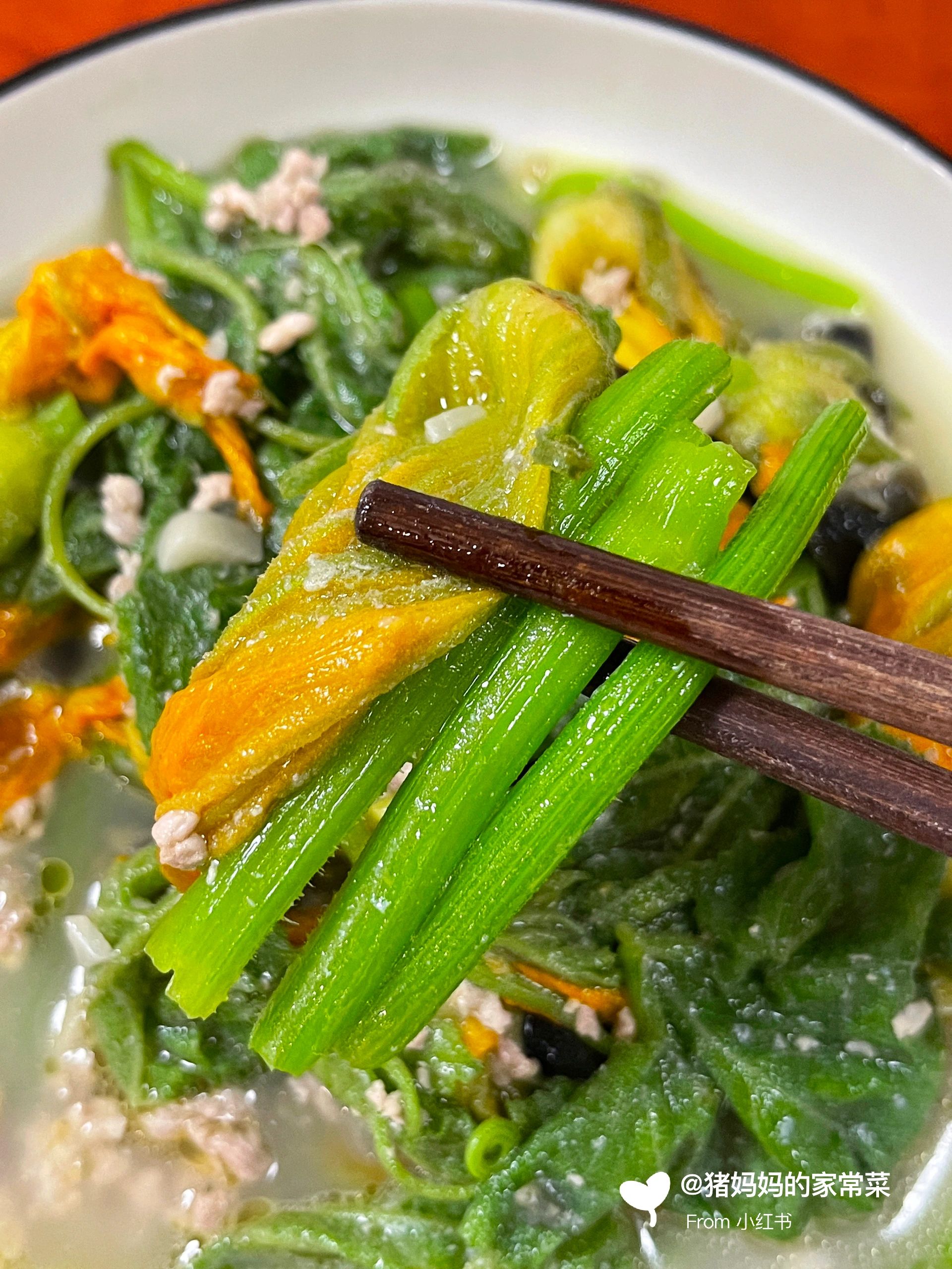 真的是巨巨巨鲜甜,南瓜花自带的清甜,这是我唯一喝过最鲜甜的素菜汤