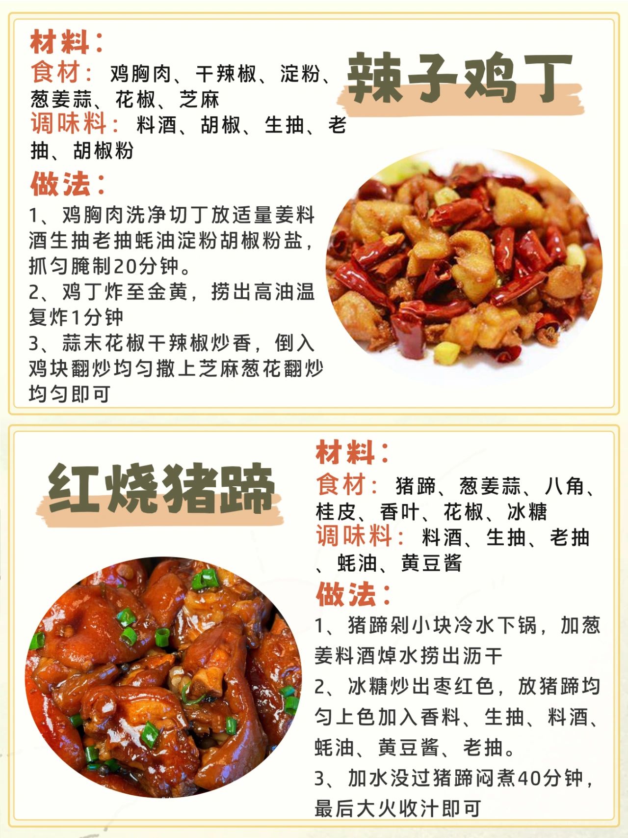 大菜:糖醋排骨,可乐鸡翅,辣子鸡丁,红烧猪蹄