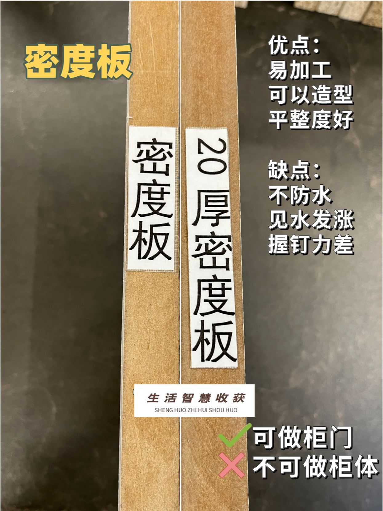 缺点:不防水、遇水发涨、握钉力差