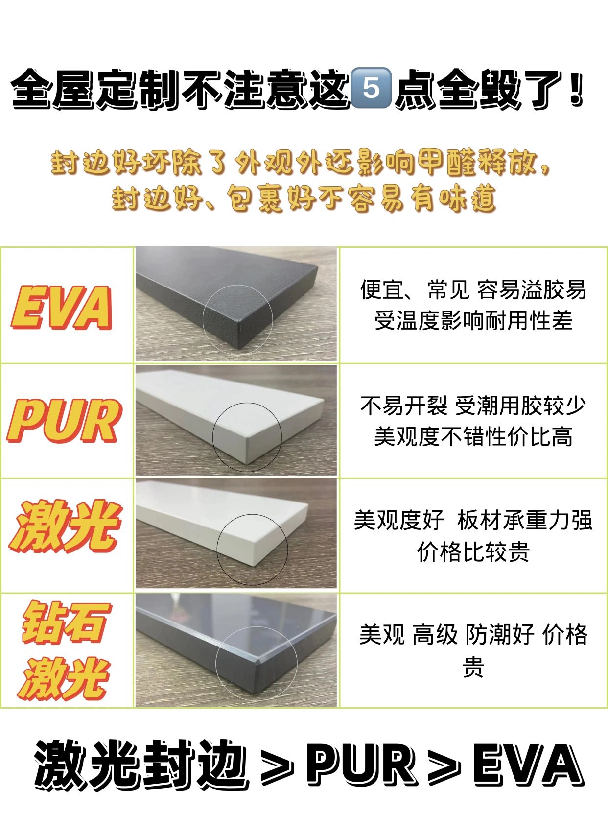 EVA封边:价格便宜,容易溢胶,耐用性差!追求性价比可柜体EVA封边