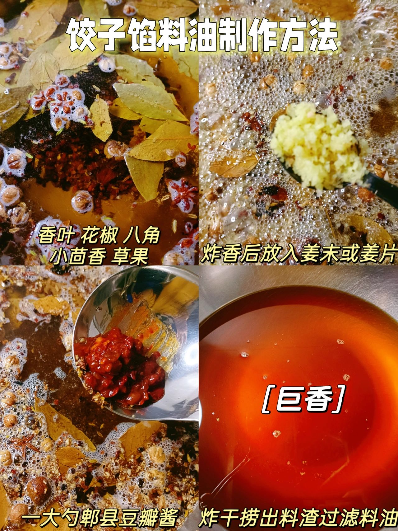 料油:锅里倒油,放入花椒 八角 香叶 小茴香 香果炸香后放入一勺姜末(或姜片)、一大勺郫县豆瓣酱炸干,捞出料渣过滤料油备用。