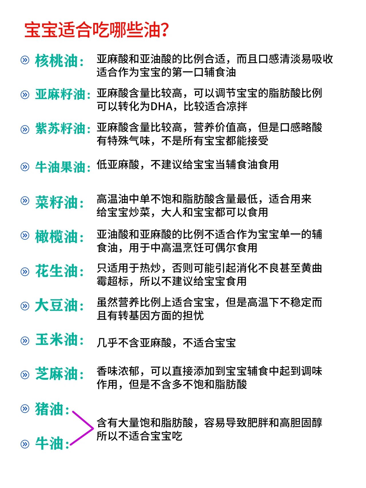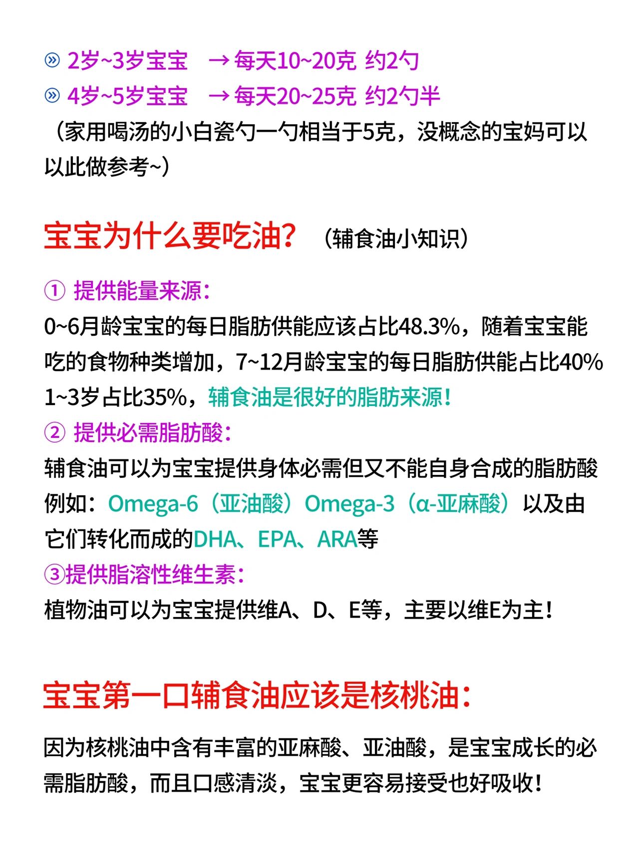4-6月龄宝宝添加辅食一周后就可以添加辅食油了,宝宝的第一口辅食油是核桃油