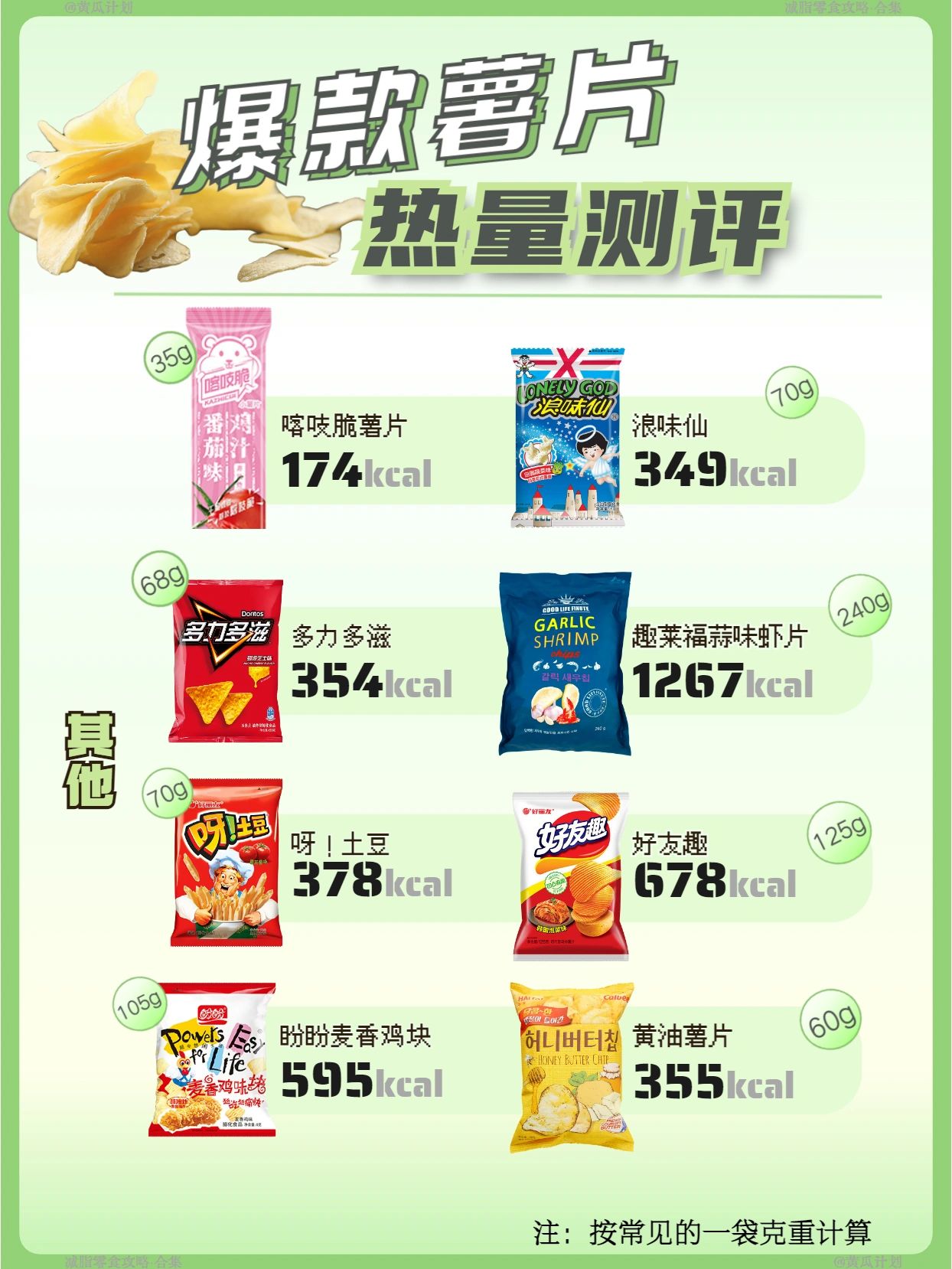 经典袋装//大波浪系列:热量相差不大,基本上540大卡/100g左右~