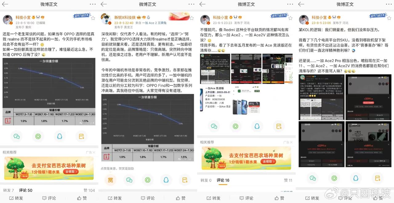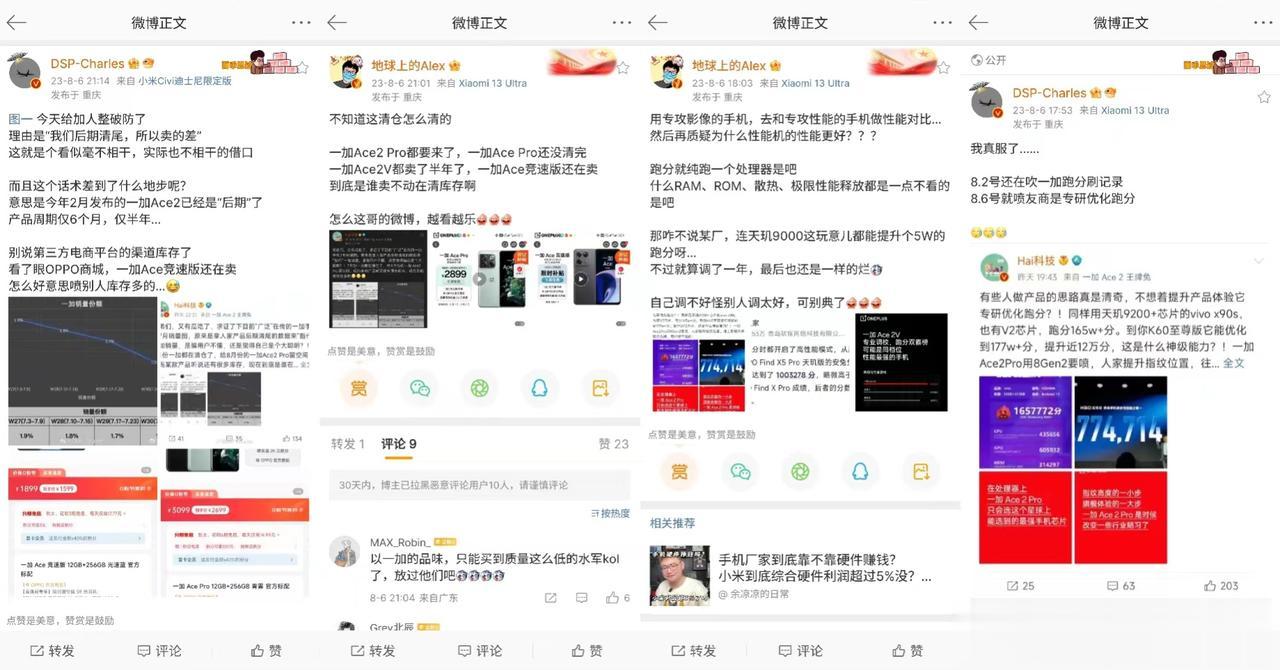 红米、一加两边博主还在吵架,相互打脸。感觉一加已经是新一代海军头子了[捂脸] 这个月两款重磅新机,一边是搭载天玑9200+的红米K60 Ultra,一边是搭载骁龙8 Gen2的一加Ace2 Pro,这场景和年初有点相似,一加配置更高,但定价也可能高一些。 说实话,数码圈这类吵架看着还挺有意思的,讨论配置、讨论销量,吵得再凶也不离开产品本身,各有各的观点,爱看。[看]