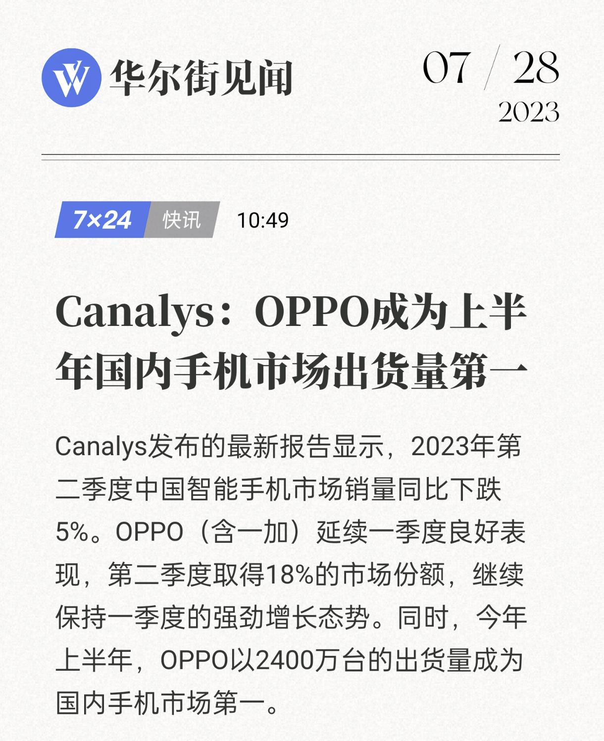 看来iPhone 15系列应该是挤牙膏了,据郭明錤的预测,iPhone 15系列的需求将低于iPhone 14系列,可能会给苹果供应商下半年的收入带来挑战。从目前曝光消息看,iPhone 15系列最大的升级可能就是USB-C口和潜望式长焦镜头,其他都是常规升级,基本就看采用3nm工艺的A17芯片了。 原因其实还与国产品牌发力有关,据IDC数据,苹果在今年二季度的手机市场份额里排到了第四,前三都是国产品牌,排名第一的是OPPO,如果结合一季度的数据,OPPO则是上半年中国手机市场份额第一,同时在Canalys数据里,OPPO是上半年手机市场出货量第一。可以说国内手机目前OV荣米格局稳定了,苹果不是一家独大了。 多个榜单第一的OPPO真的是闷声发大财,直板+折叠双旗舰战略效果不错,Find X6系列和Find N2系列帮助OPPO挤进了高端市场前三。小折叠Find N2 Flip获得了上半年折叠屏单品销量第一,看来大外屏的方向很对;Find X6系列则是消灭了主副摄概念,配备超光影三主摄,让用户在各种场景都能轻松出片;Find N2大折叠更是将重量做到了233g,超过了某些直板旗舰,加上不错的性能配置,是一款值得重用的折叠屏手机。 目前时间已经到了下半年,据说还有一大批新手机发布,不知道哪家厂商又能突出重围呢?