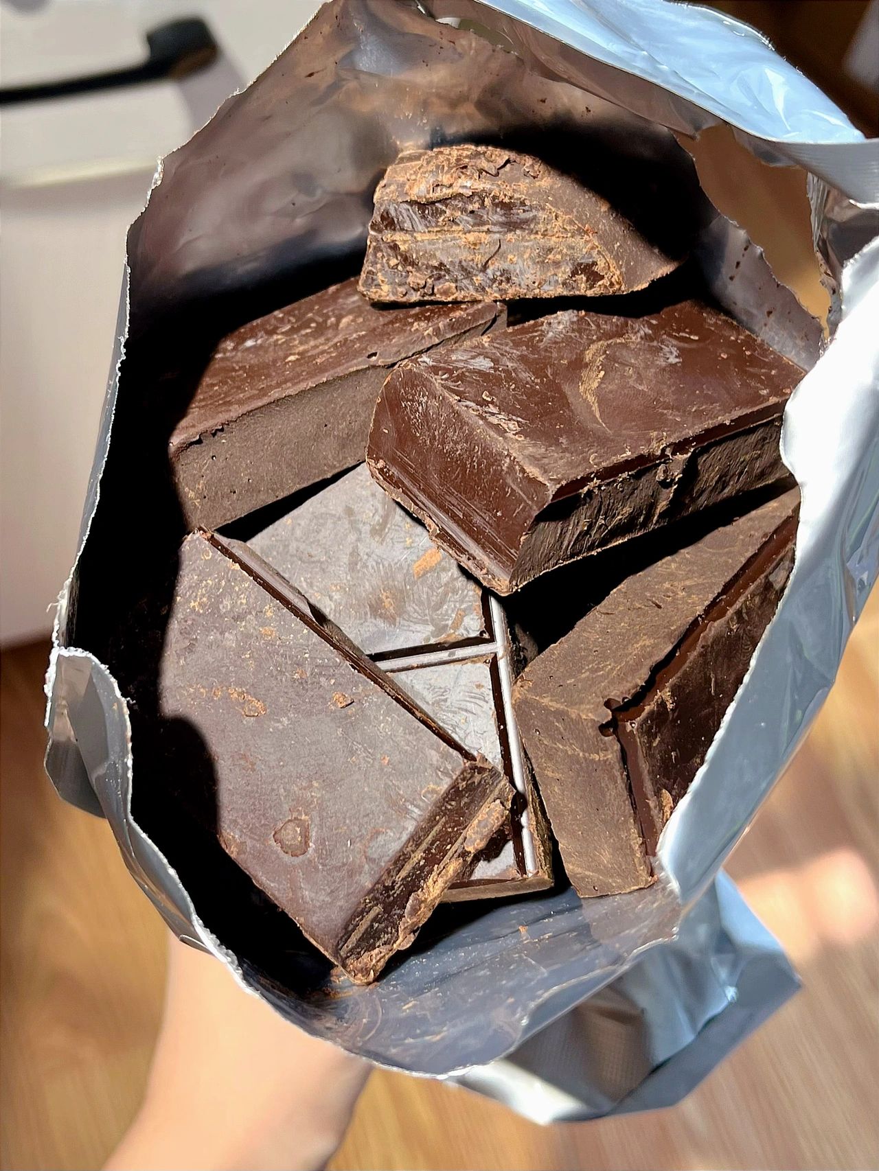 纯可可脂的,无糖!!!而且纯纯的黑巧,好苦好浓的味,但是不酸,我喜欢抱着啃,偶尔用来做低卡甜品