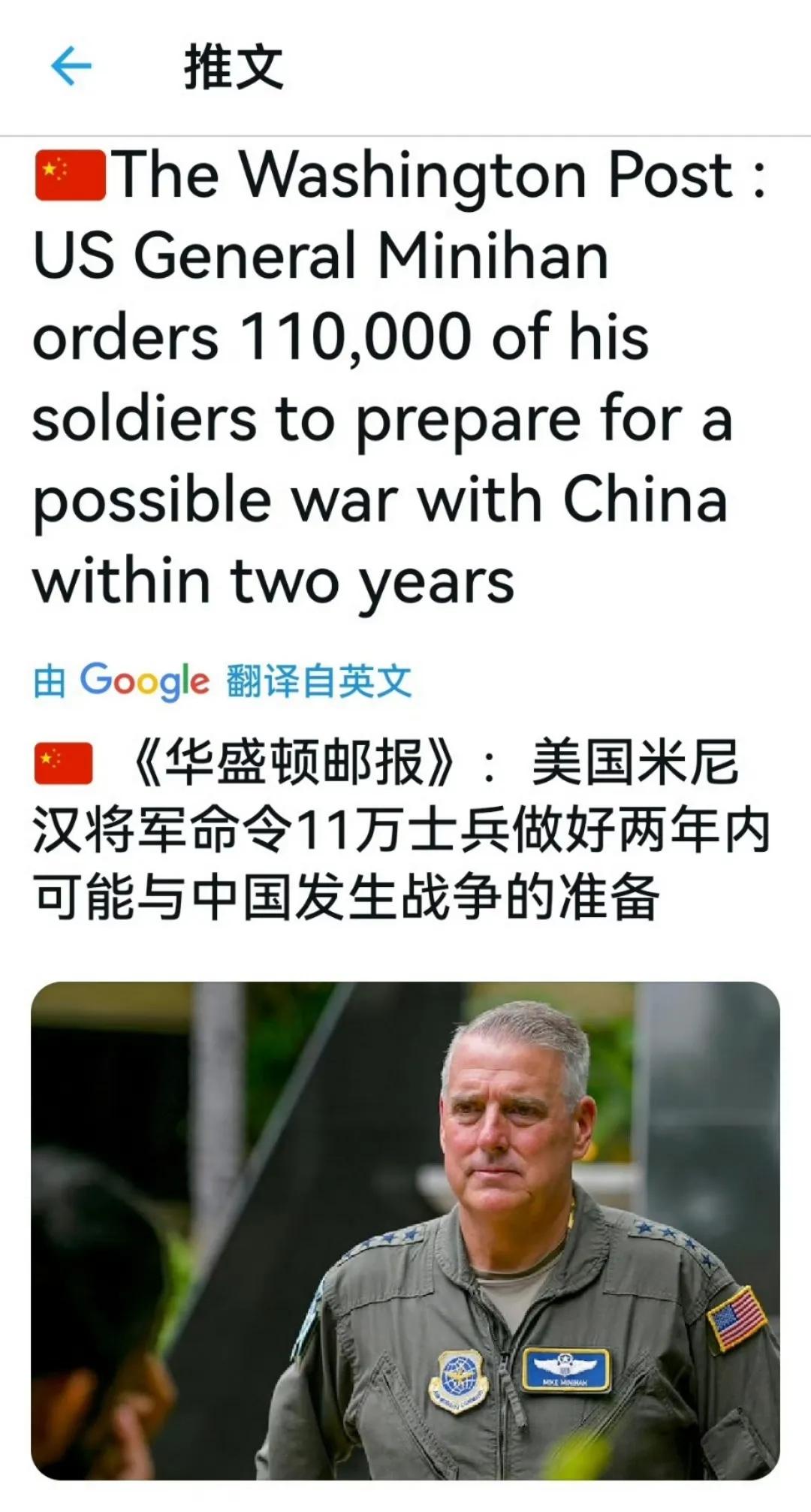 美国军方高层认为两年内中美发生军事冲突的可能很大,并且要求11万美军士兵做好开战准备。看来美国也清楚时间不在他们那一边,越早动手越好。国内专家就分析美国国内政治正在走向极端化,美国的军工复合体实际上已经绑架了美国政府,从而出现了一批好战分子。未来世界如果发生核战争,很可能也会是美国率先使用。