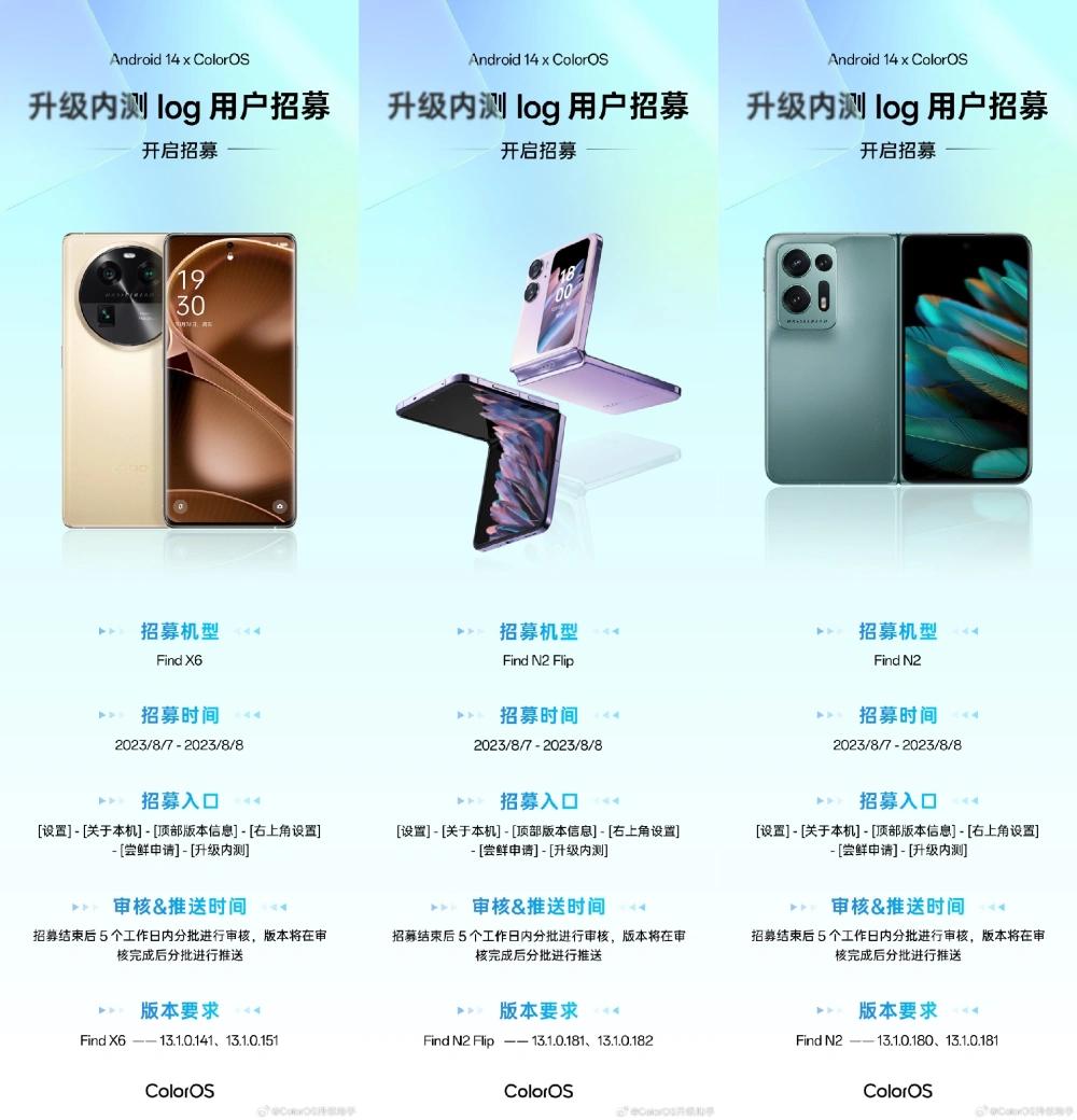 虽说我不是很推荐iPhone老用户升级iOS系统的,毕竟很多人都在吐槽说老iPhone更新最新的iOS系统之后都会变卡。不过安卓这边的推送还是可以升级的,从以往的经验来看,一般来说安卓手机厂商推送的升级都是正向的优化,尤其是在安卓大版本更新的时候。 最近OPPO官方就宣布了OPPO Find X6、OPPO Find N2和OPPO Find N2 Flip三款手机,关于Android 14×ColorOS内测log版本用户招募已经正式开始,在更新升级之后,这些产品在流畅性方面的体验,还有像文件中转站和新的智慧息屏等的功能应该都可以用上,要是你是这几款手机的用户,不妨参加一下此次的内测招募计划,感觉还是挺有意思的。另外ColorOS 14好像还会针对折叠屏的大屏利用率、内外屏联动、悬停功能上实现独家的优化,可以期待一波。