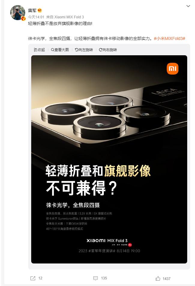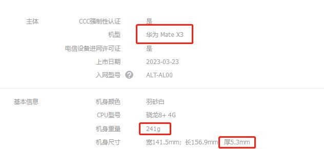 华为Mate X3重量241g,展开厚度5.3mm; 荣耀MagicV2重量231g,展开厚度4.8mm; 三星Z Fold3重量253g,展开厚度6.1mm; 小米MIX Fold3重量???,展开厚度??? 小米MIX Fold3宣传既轻薄又全能,不知道能保持多少g呢?[吐舌]