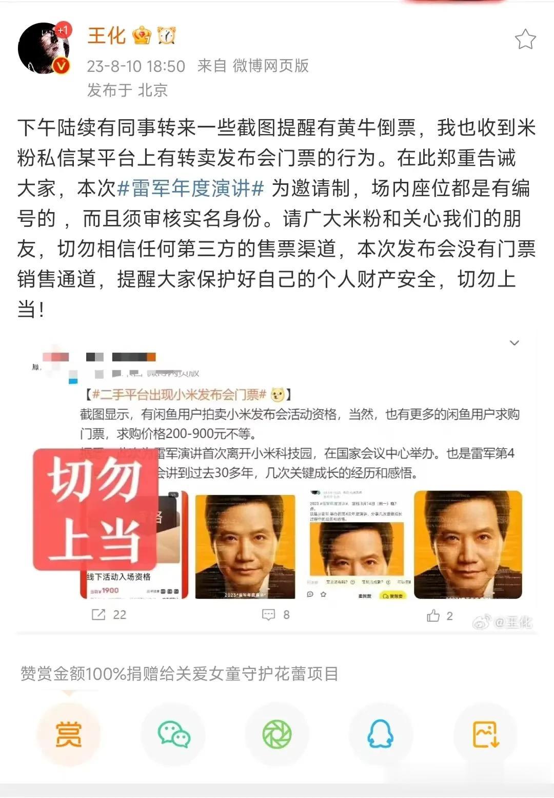 雷军破圈了啊!但是大家别被骗了,实名邀请制。 这次雷总发布会演讲是实名邀请制,不要相信任何黄牛。说实话,我只见过明星演唱会抢黄牛票,没想到雷总的一场发布会演讲,都有人抢黄牛票,这个人魅力手机圈没几个人能比的。手机圈发布会,看段子就老罗,看真情流露就雷总,看遥遥领先就大嘴,其他发布会都比较无聊,基本属于念PPT。 之前的雷军超大杯,一个杯子都能炒到五六百块一个,每年的年度演讲都堪称科技界春晚了,大家为什么爱听雷总讲,因为雷总可以说是草根的天花板了,没有背景,凭借自己的能力和努力有了今天的成就,他的很多话都非常接地气,并且很适合我们普通人。所以每次雷总的演讲,大家不止关心的是小米在发布什么,更关心的是雷总与我们分享人生经验。