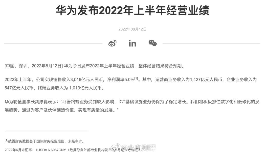华为发布2023年上半年经营业绩(图1),整体经营稳健,结果符合预期,实现销售收入3109亿元人民币,同比增长3.1%,净利润率15.0%。其中终端业务收入为1035亿元人民币,智能汽车解决方案业务收入为10亿元人民币。净利润比去年同期(图2)增长不少。