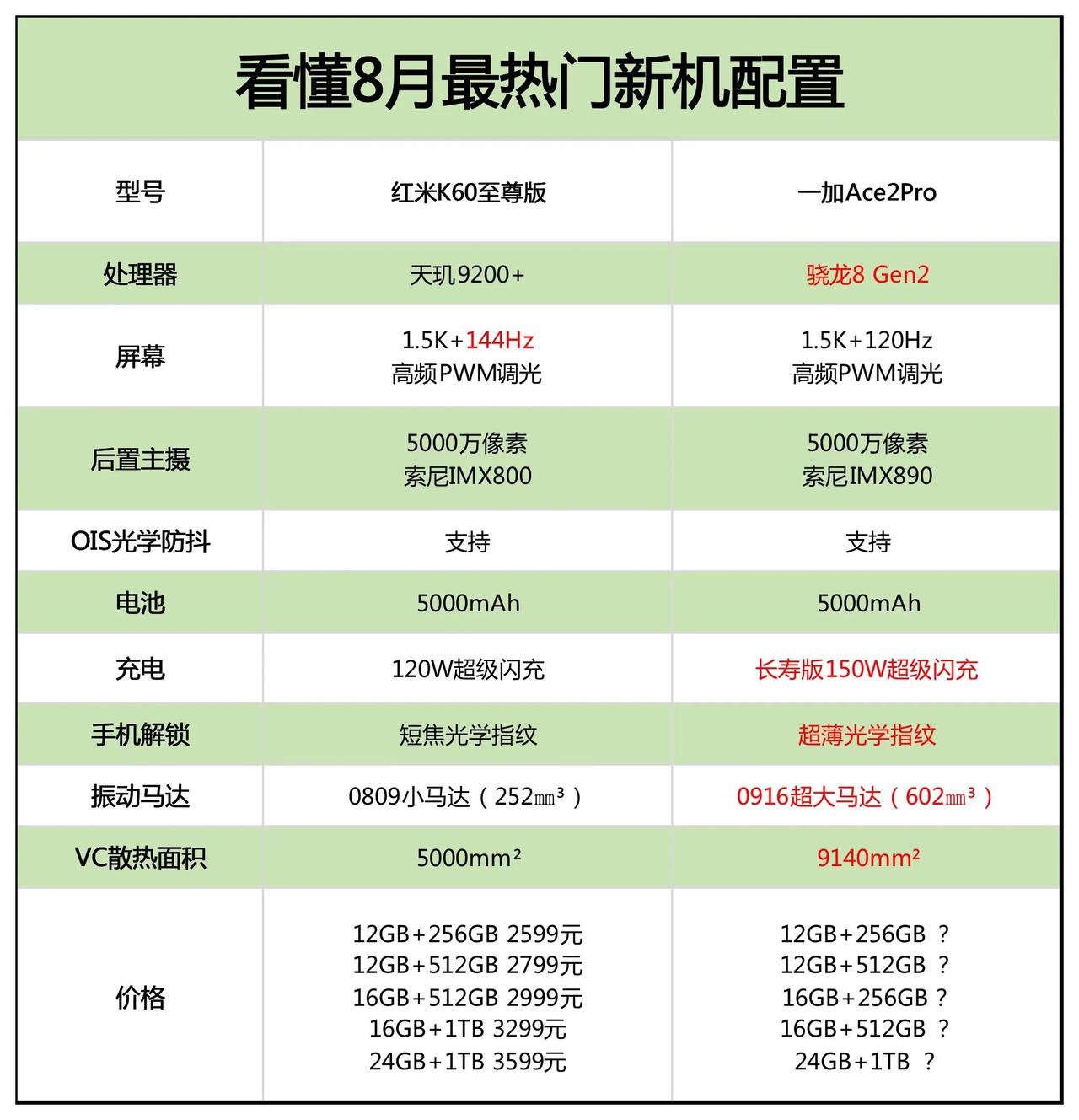 用天玑9200+去打骁龙8+档位的产品没问题,但硬碰骁龙8Gen 2还是不行。[吃瓜群众] 要知道,当初的天玑9000口碑这么好,但大多数厂商还是选择骁龙888和骁龙8 Gen1这俩火龙,更不用说骁龙8Gen 2这个时候了。 2599的红米K60至尊版很香,但有更多的预算,还是建议选择骁龙。那么问题来了,一加Ace2 Pro定多少才是大家可接受范围?[看]