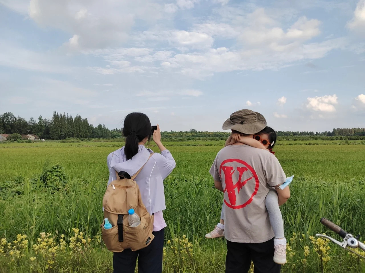 我们穿过稻田,来到湖边,骑累了湖边休息一下。