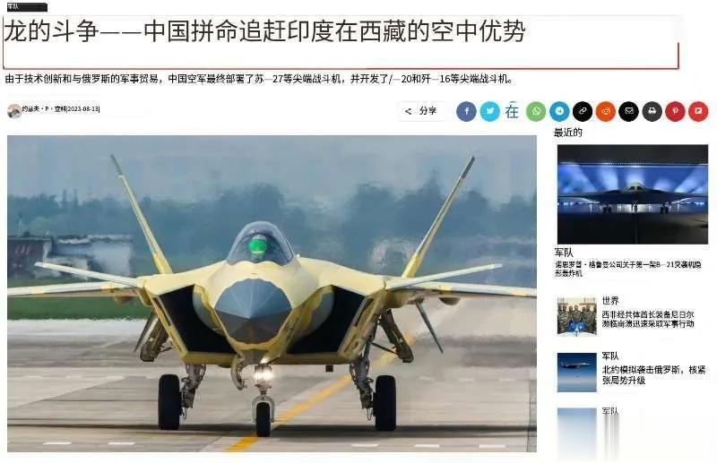 中印边境谈判之际印媒爆出中国在藏南空中力量不如印度。印媒:中国拼命追赶印度在西藏的空中优势,通过与俄罗斯贸易终于部署了苏27等尖端战机。印度这篇报道中充满了一种对中国莫名其妙的优越感。印度人认为以阵风、苏30为主力的印度空军在边境地区对中国拥有空中优势。事实上印度苏30过于陈旧的雷达航电系统根本无法与中国的歼16相抗衡,而从法国采购的阵风在空战方面也不如歼10C。更不要说歼20这款重型隐身战机,对苏30和阵风更是具有碾压优势。因此印度媒体认为在西藏对中国拥有空中优势除了是采用一种不科学的逻辑得出的结论外,也很有可能是为正在举行的中印边境问题的最终谈判做舆论宣传,企图通过夸大自身实力好在谈判中取得优势。这也符合印度人一贯爱耍小聪明的性格。