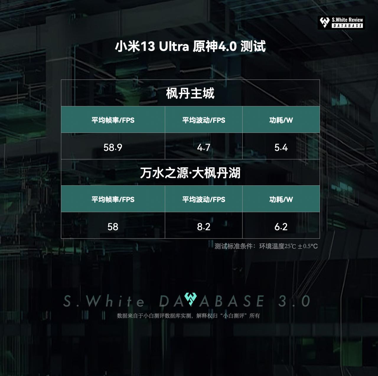 原神4.0今天更新,我们小伙伴直接把所有的图肝完了,随手用小米13Ultra测试了一下各个区域的负载情况: 1、陆地场景—枫丹主城:帧率58.9帧,功耗5.4W,压力没有之前测试的须弥城大; 2、水下场景—万水之源·大枫丹湖:帧率58帧,小米13Ultra时不时出现掉帧情况,功耗达到了6.2W,部分场景峰值功耗可以达到7-8W。 该数据路线未确定,仅供参考,后续看新地图更新情况再做测试。 环境温25℃±0.5℃,屏幕亮度350nit,声音50%,性能模式 (数据基于小米13 Ultra 测试时最新版 MIUI 14.0.17.0.TMACNXM 系统测试)