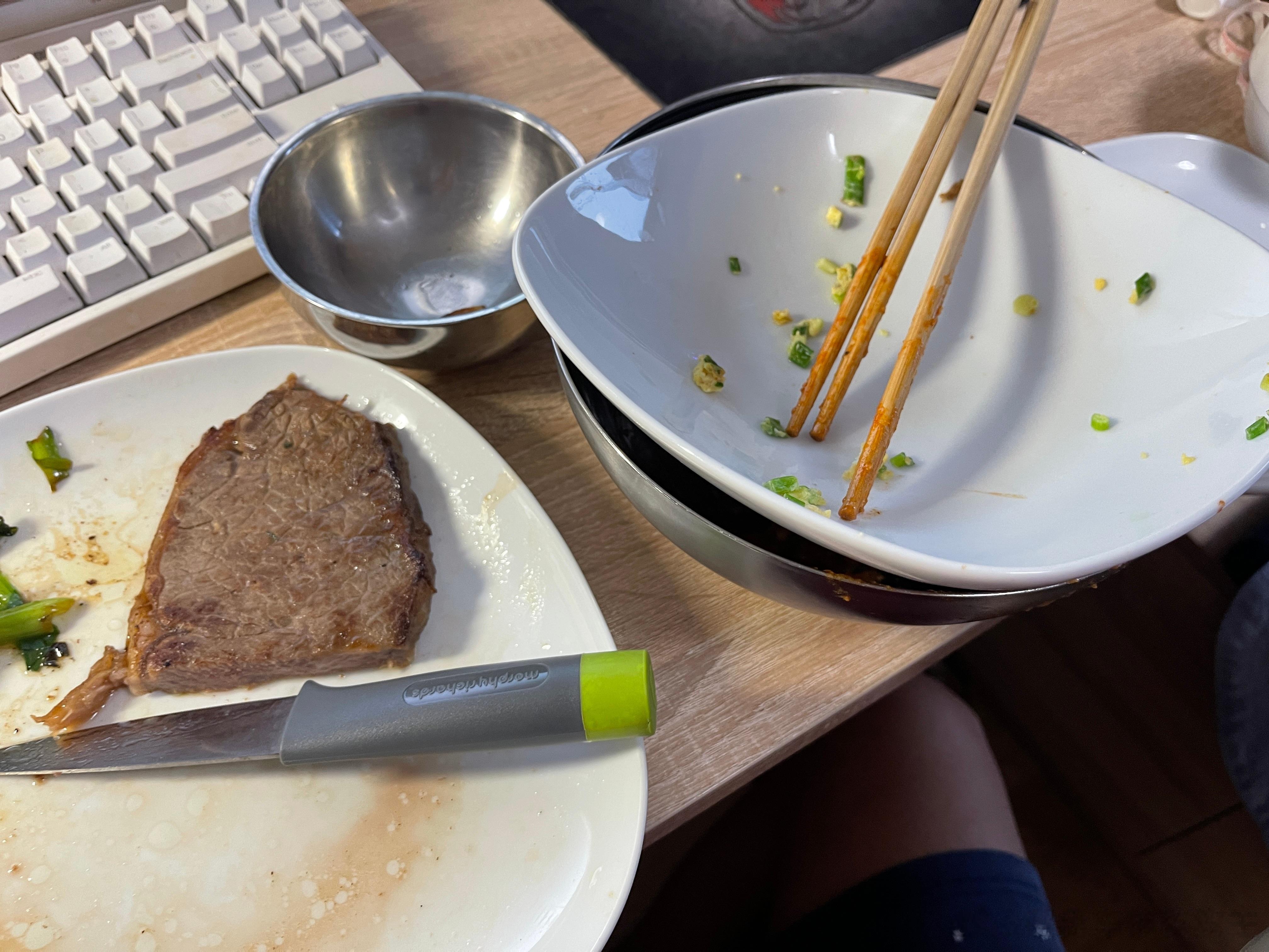 【一天一顿饭1/30】爽吃一顿,菲力➕西冷,炸蒜片,松茸,炒鸡蛋。剩下一点西冷吃不动了,太肥了,收工!