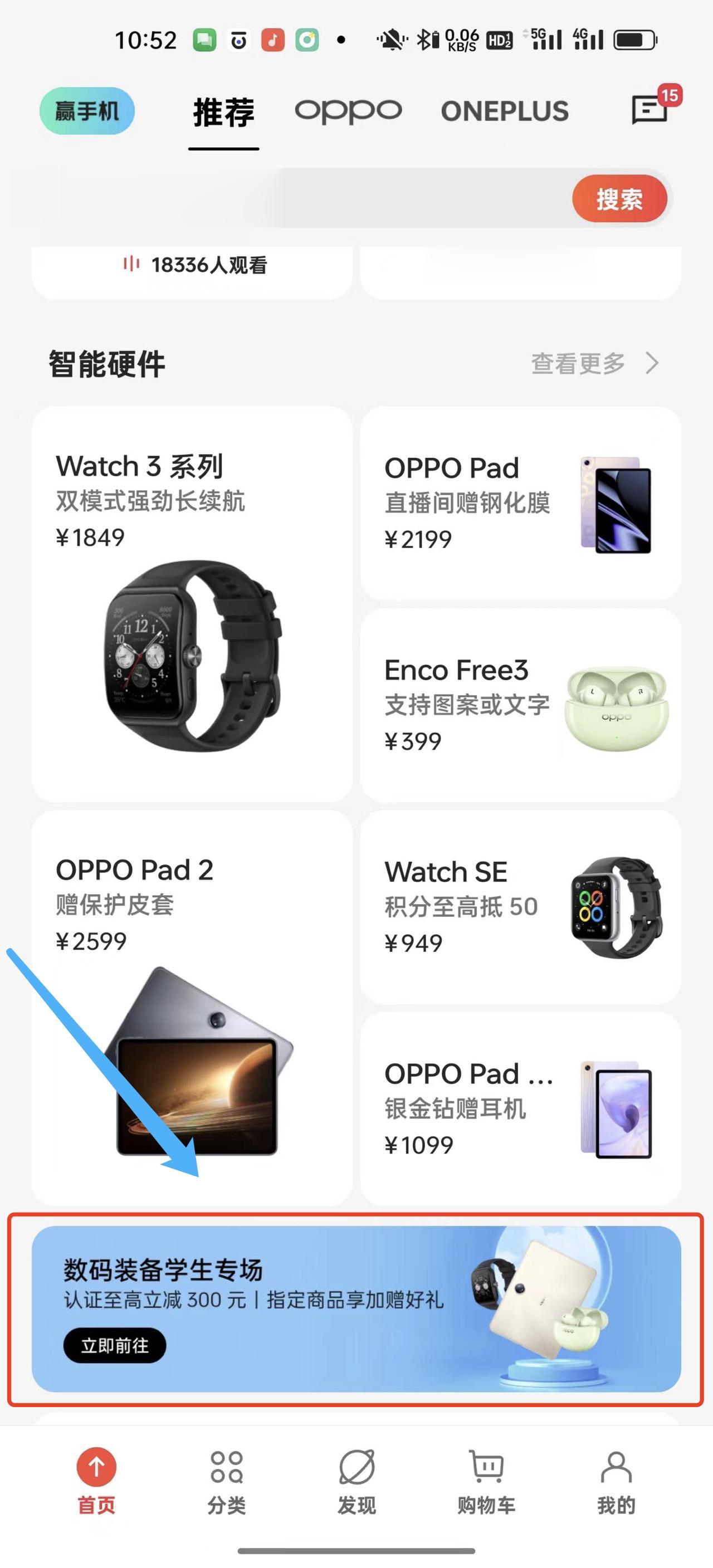 一加Ace2 Pro和红米K60至尊版真的是“卷王”,一个2599,一个则是2999,说实话怎么选都是不亏的,K60至尊版的优势就是IP68和超低的价格,一加Ace2 Pro的优势是能效比更好的骁龙8Gen2,可以说,想要直屏的选红米,曲屏就选一加,都是很香,不用纠结太多。 隔壁OPPO的教育优惠也是打起了“价格战”,IoT教育专场最高有300元优惠, 全家桶最高立减600元,全场最低更是杀到了209元!如爆款一加Buds Pro 2学生价仅799元,这耳机配置很越级的,48dB降噪、丹拿联合调音、颈椎健康管理等[吃瓜群众]如今LHDC5.0全面升级,传输更稳,支持空间音频的机型也覆盖了最新的一加Ace2 Pro、OPPO Find X6 Pro等,搭售一加Ace 2 Pro还能立减150呢。 至于怎么认证学生身份,在OPPO商城APP应用里点击:我的-福利专区-学生优惠,完成认证即可领取优惠,然后首页里就能进入数码装备学生专场了~