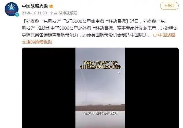 继“关岛快递”后解放军又增添“夏威夷快递”。中国最新研制的东风27超高音速弹道导弹试射成功,该导弹有两大特点,一个是射程远,有效射程在5000-8000公里范围,填补了东风26和东风41打击范围之间的空隙,可以打到美国夏威夷直接突破第三岛链。另一个是难以拦截,东风27具有超高音速和复杂的机动性,现有的拦截系统根本无法拦截,堪称一款颠覆战场规则的杀手锏。东风27的研制成功标志着我军对美国拥有了全段反制打击手段。