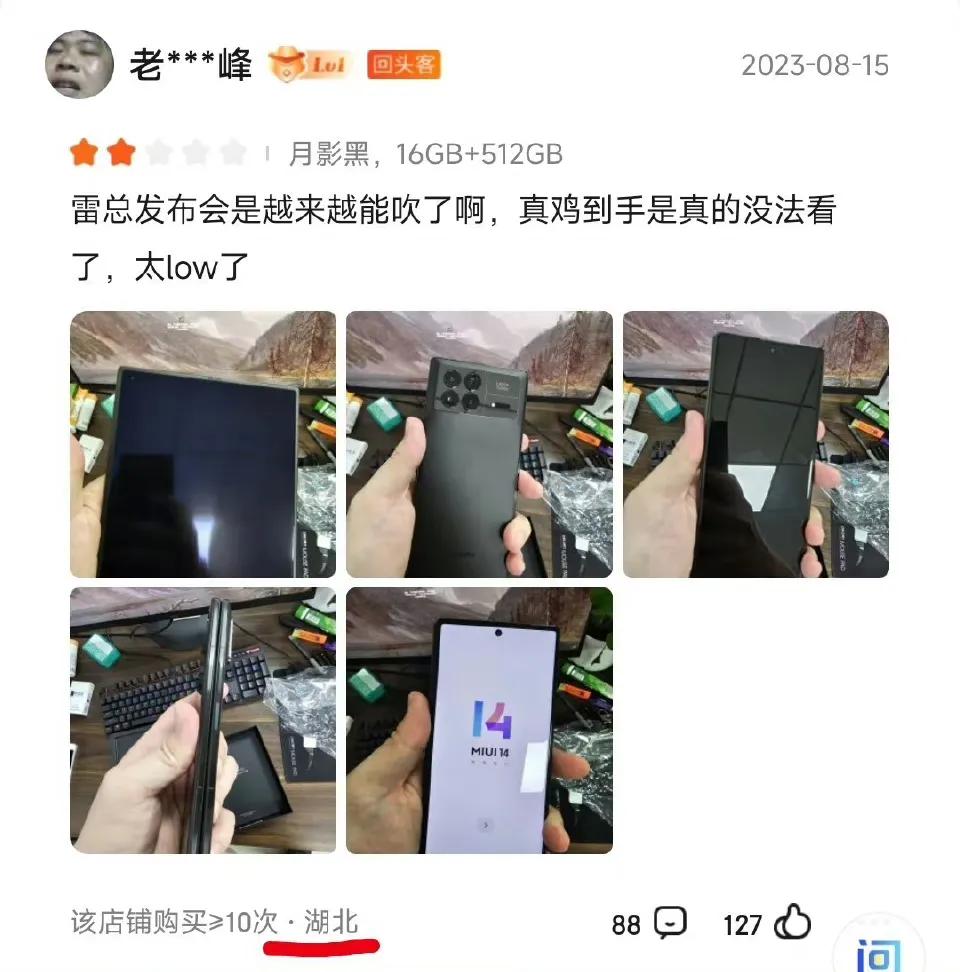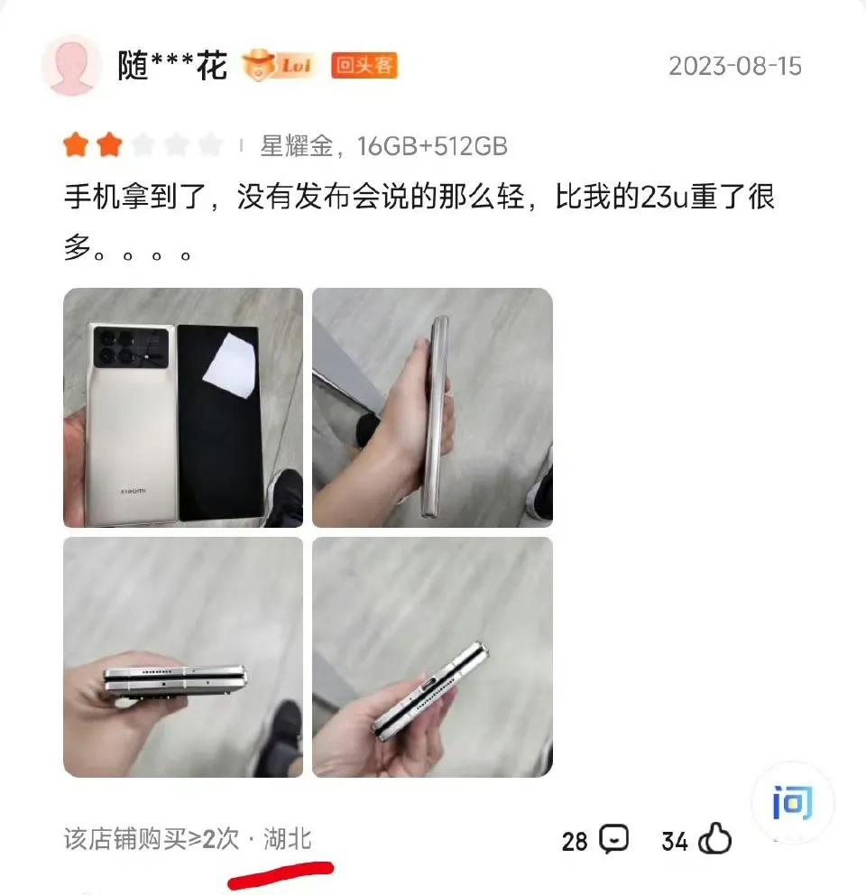 有米粉认为,小米MIX Fold3被恶意刷差评了,而且差评中提到了荣耀MagicV2,所以有不少人认为是荣耀打不过,找人刷的差评。 我不知道是不是有人在故意黑小米,就想问一个问题,有几个人都花8999买一台小米MIX Fold3,然后都吐槽不如友商好用,会不会被告?如果真的被告的话,就下面几张图里的差评内容,该告他什么? “不如V2质感好”、“没有三星S23轻薄”,我认为都挺主观的。[尬笑]有点被害妄想症。