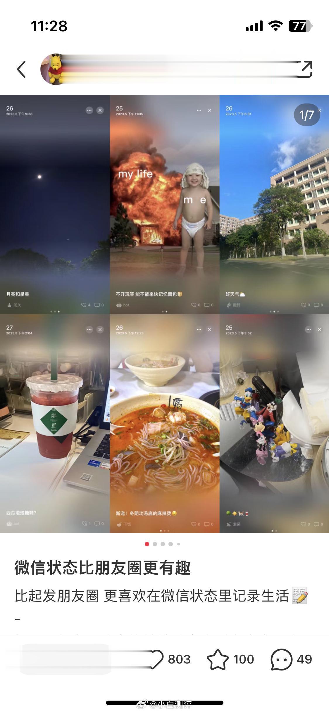 之前用过几次微信状态,确实适合不想打扰列表、不用刷屏朋友圈同时又记录日常的用户[航天员]
