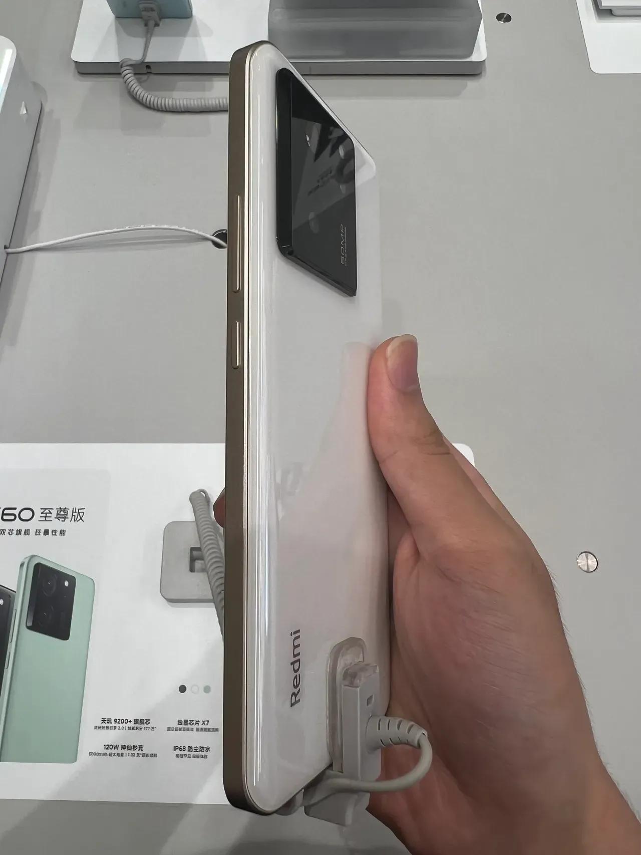 别的不说,K60至尊版变好看不少,再说红米不好看要打了[吃瓜群众]这白色后盖看起来有点像小米13,上手有点陶瓷感,中框虽是塑料,但做成金色,也挺精致的。