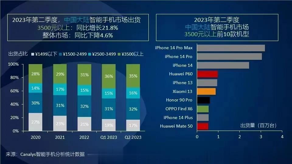 同期,小米13销量和华为P60销量接近,但华为P60 Pro.销量远大于小米13 Pro,这点没问题吧[尬笑] 尽管华为只有4G,均价也更高,而且一年两款旗舰,依然是国产高端第一。马上华为5G回归了,继续遥遥领先,差距只会越来越大。