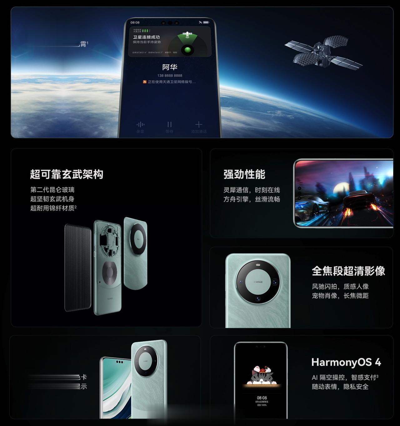 太突然了 华为Mate 60 Pro官网直接上架开卖 12+512GB版售价6999元 📱主要配置:6.82英寸1.5K分辨率OLED四曲屏(微曲?),1-120Hz LTPO刷新率,1440Hz高频PWM调光,300Hz触控采样率,第二代昆仑玻璃材质,屏下指纹+3D结构光,雅丹黑、雅川青、白沙银、南糯紫4个配色,机身厚约8.1mm,重约225g; 📷影像:前置13MP+3D深感摄像头,后置50MP有OIS+12MP超广角+48MP超微距长焦有OIS,3.5X光学变焦,最高100X数码变焦,可变光圈; 🔋性能充电:处理器未知;5000mAh电池,88W有线充电,50W无线充,20W无线反向充电,USB 3.1 Gen1,支持IP68防尘防水,红外遥控,卫星通信,AI隔空操控等等。