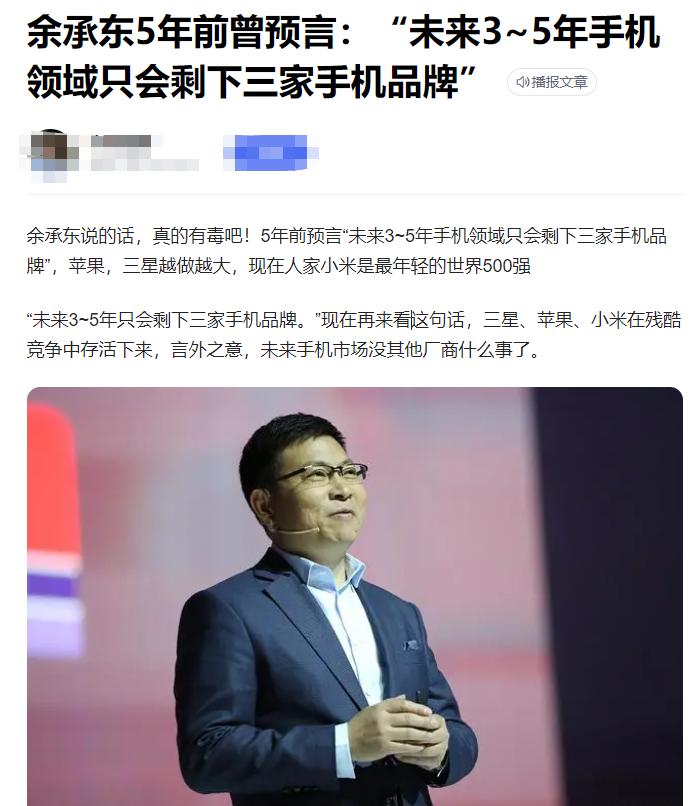 华为Mate60 Pro全系麒麟9芯片,全系巴龙5G基带,全系鸿蒙4.0系统,全系HMS服务,永远不缺货。留给其他厂商的时间不多了。现在再回看余承东的话,未来三五年手机厂商只剩下三家,确实,没错。 万象更芯,遥遥领先。