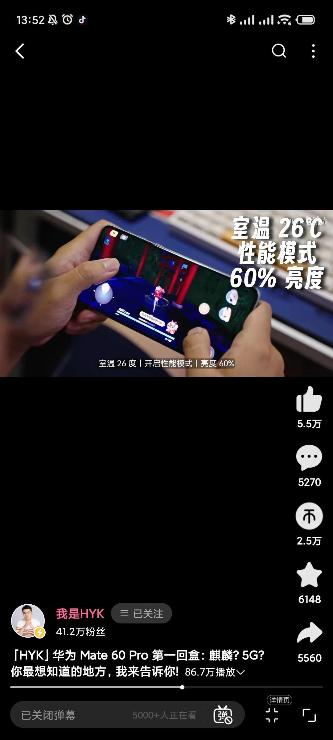 博主实测华为Mate60 Pro星穹铁道半小时56帧,温度38.8度,耗电12%,这么一看,麒麟9000s的性能似乎没有想象中那么差,甚至能和骁龙8Gen2一战呢[思考] 现在原神、和平精英还没有适配,不能正常跑,不过就《崩坏:星穹铁道》的表现来看,麒麟9000s的性能起码超过骁龙888,接近骁龙8+。 鸿蒙➕麒麟真的很搭,目前很多影像厂商还没有针对新芯片做优化,具体表现应该得再等等。大家先别着急买,我先帮大家试试水。