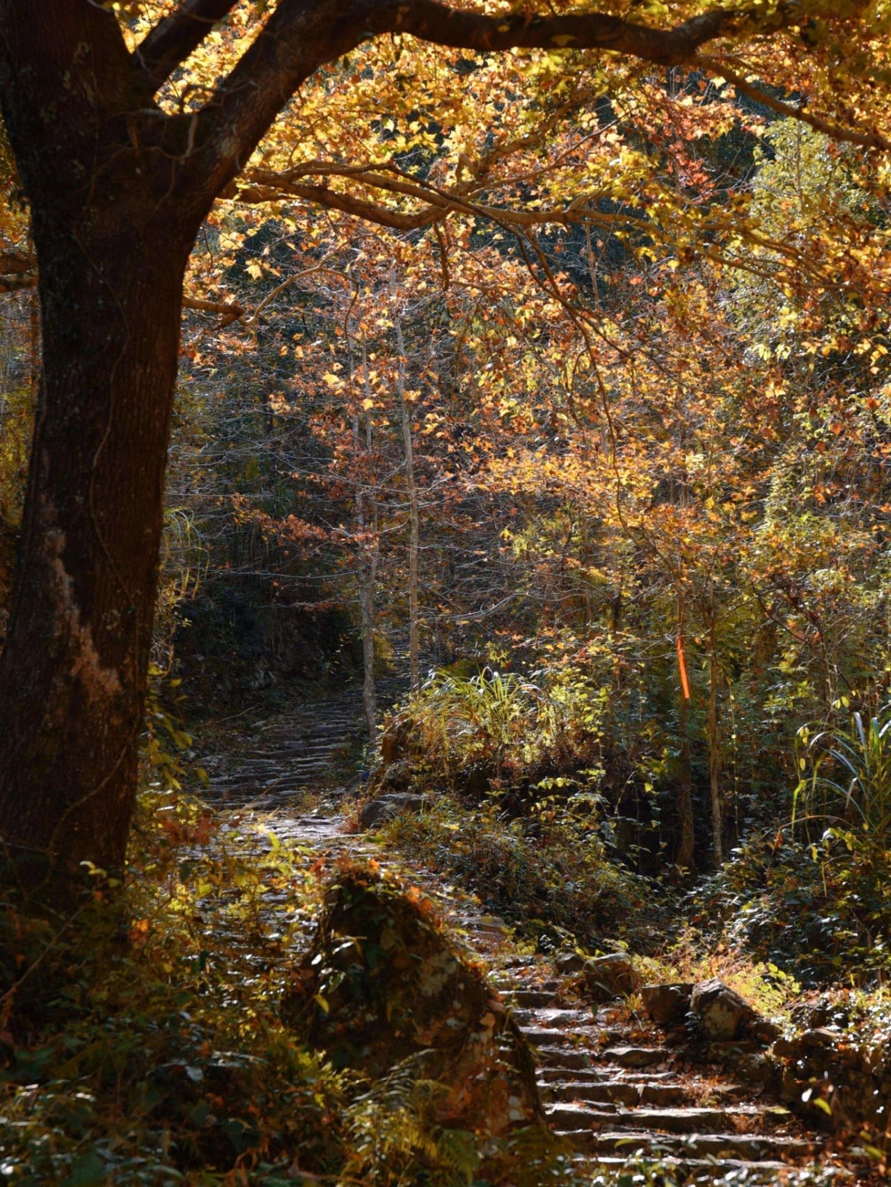 走进“南黄古道”铺眼而来的是满地的黄叶、红叶。
