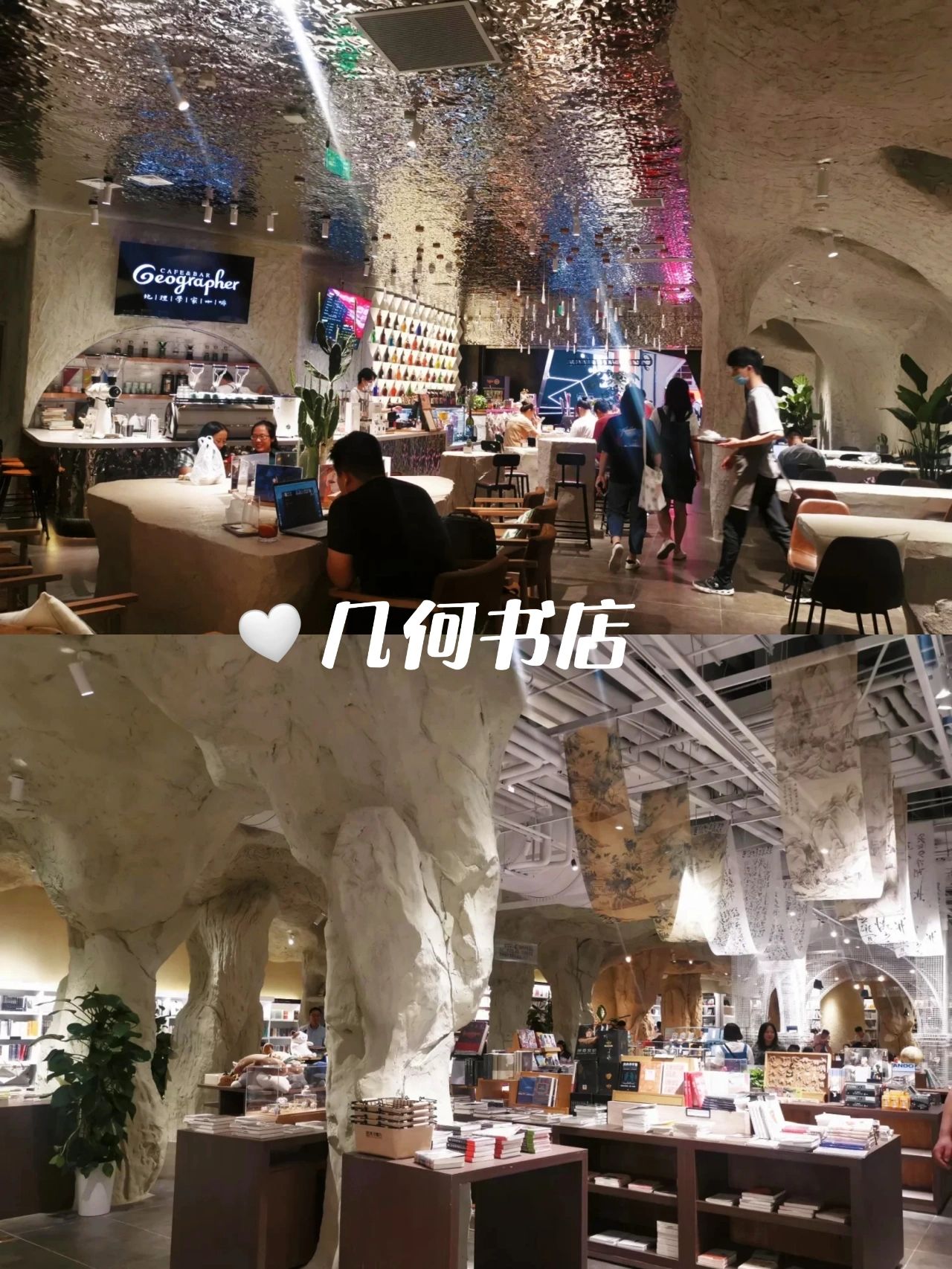 上海首家把知识搬进岩洞的神奇书店,高耸宽阔的石拱将几何书店隔成不同的区域。