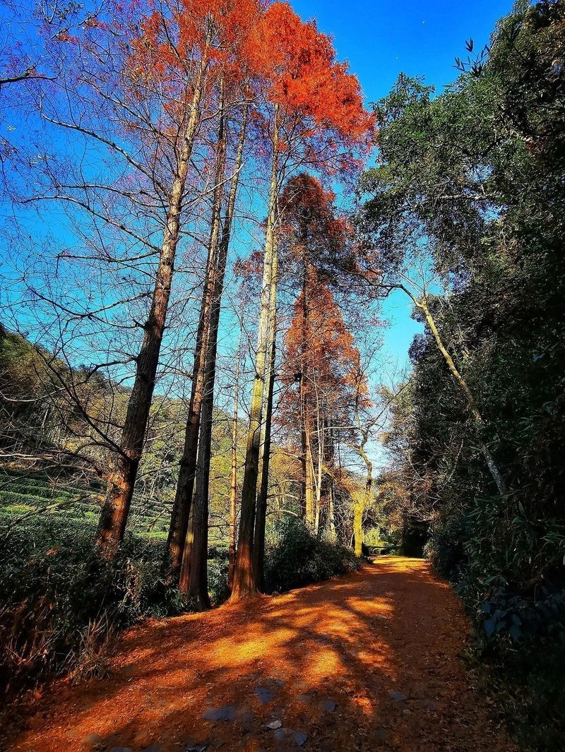 而这里最美的季节应该是深秋时节,红枫、黄栌、银杏、水杉、将这里装扮成一片绚丽灿烂的美景。