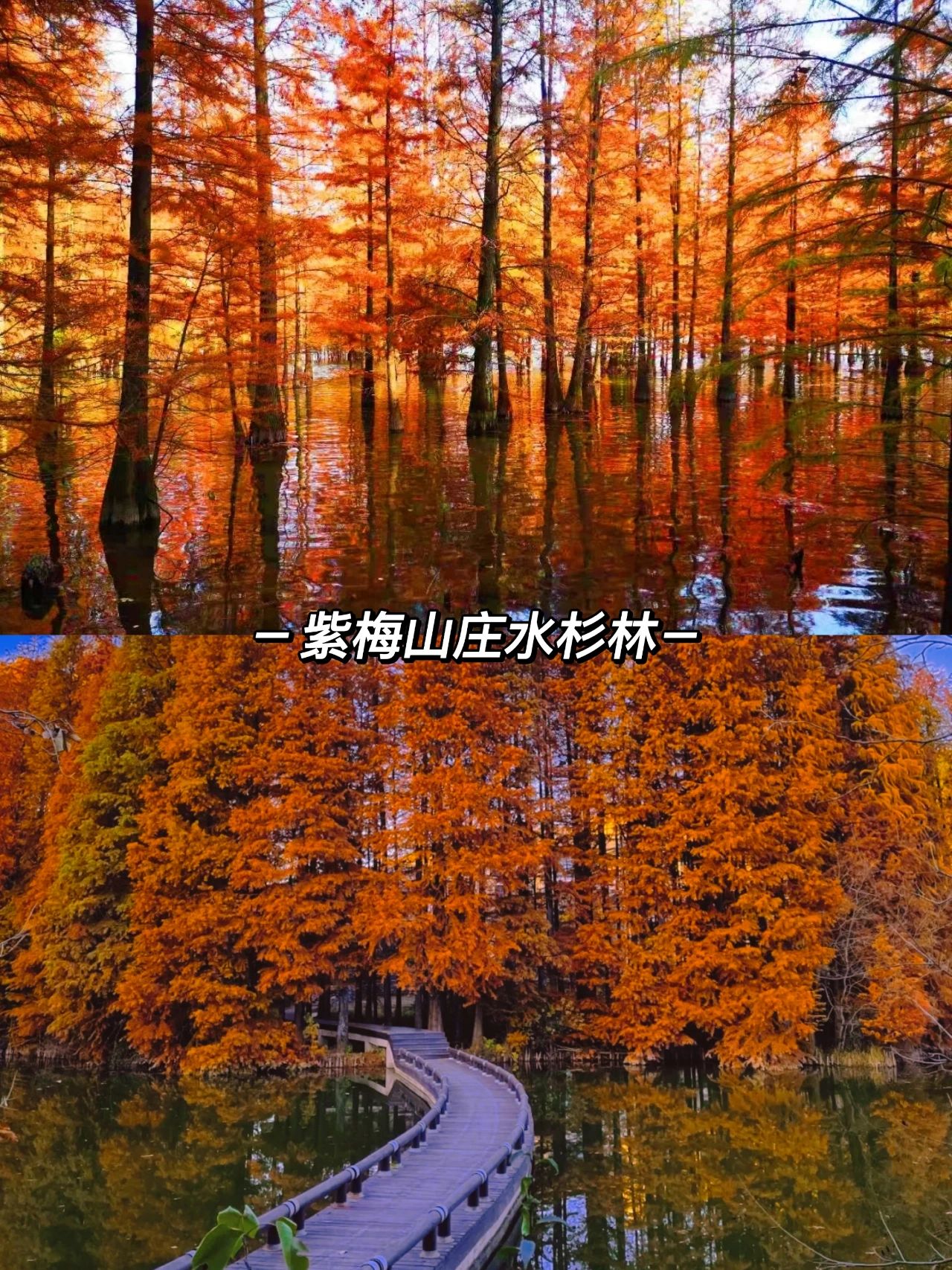 建议下午光线☀好的时候去超级出片!红色的水杉倒映在湖中真是太美了,简直是秋冬的颜色。