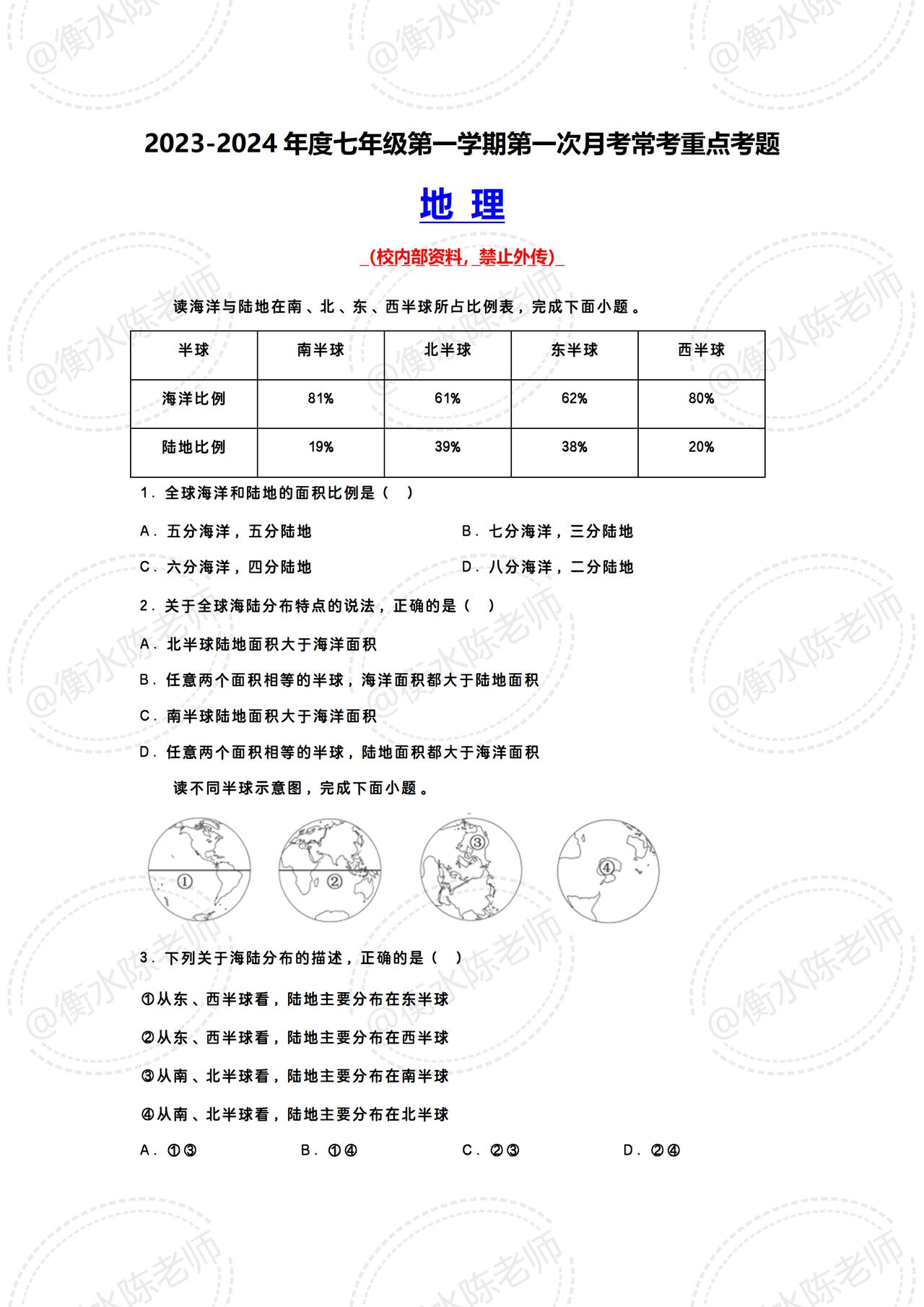 七年级上学期地理,第一次月考重点必出考题公布,考题根据不同的城市、学校、版本编写的,这些考题全是考试中经常出现的考试类型,想要获得好成绩,记得做一遍月考试卷哦,想要获取自己省份月考卷的考生,跟我沟通哦。